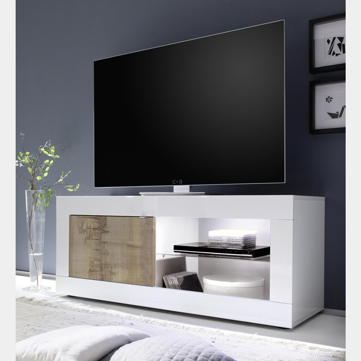 Base porta TV ad 1 anta, pero e bianca lucida, prodotto Made in Italy.