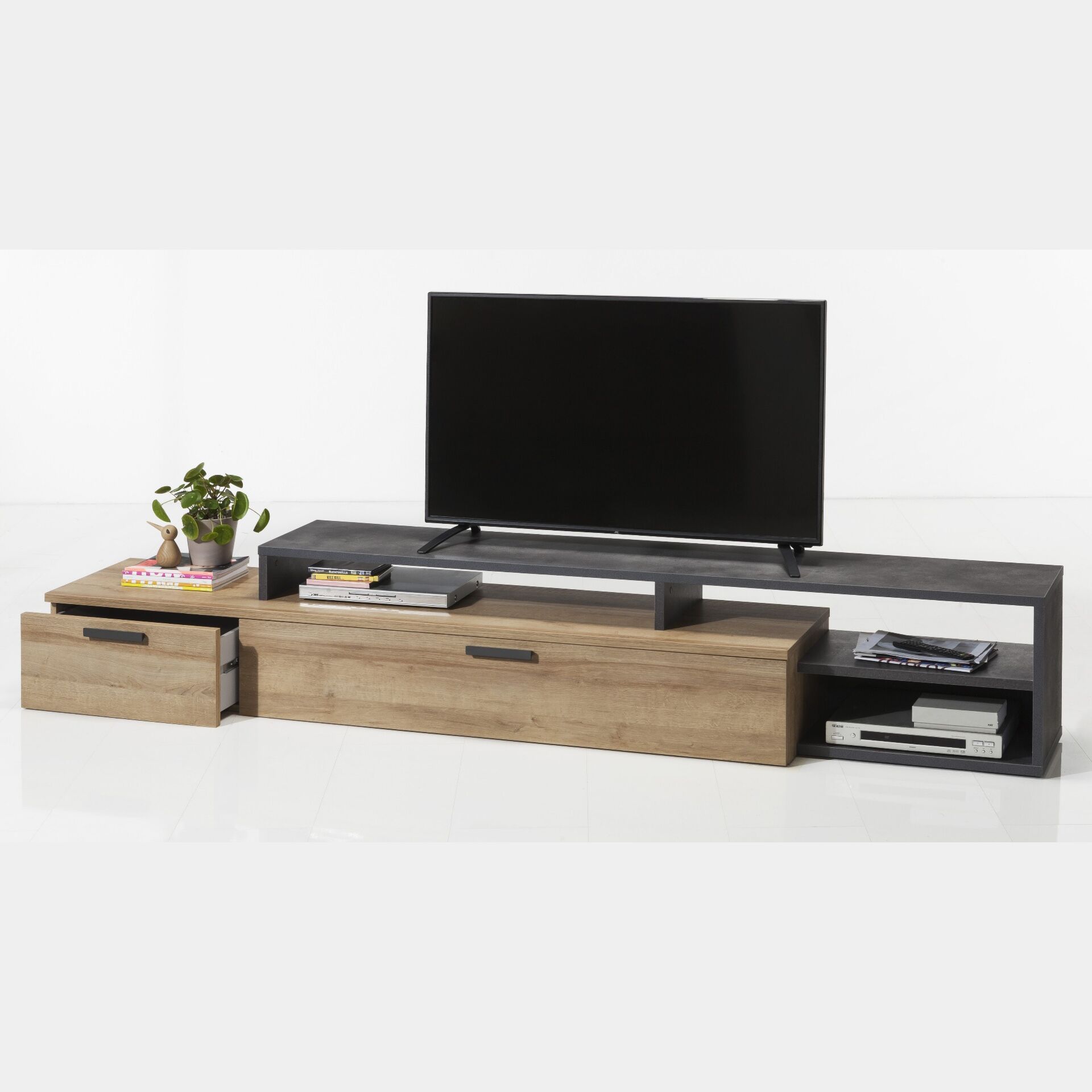 Base porta Tv industry in finitura Grigio smoke e Rovere