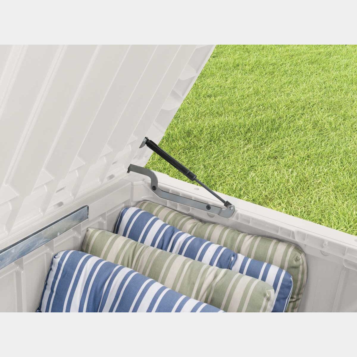 Che sia per riporre attrezzi da giardino, giochi da piscina o cuscini, il baule Tiglio bianco è la soluzione ideale grazie alla capacità di 570 litri. La comoda seduta sul coperchio per due adulti, rende Tiglio bianco una soluzione versatile e pratica. Realizzato con resina durevole e resistente agli agenti atmosferici con un'elegante finitura effetto legno, mantiene il contenuto asciutto e ventilato aggiungendo, allo stesso tempo, un tocco di eleganza al tuo giardino.