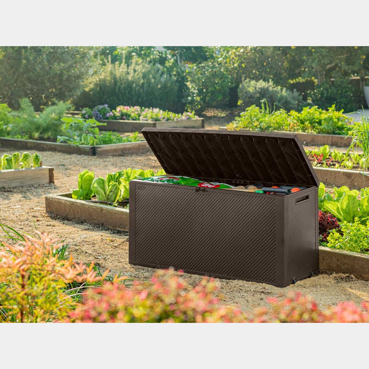 - 270 litri di capacità ideali per riporre accessori da giardino, giocattoli, cuscini e molto altro