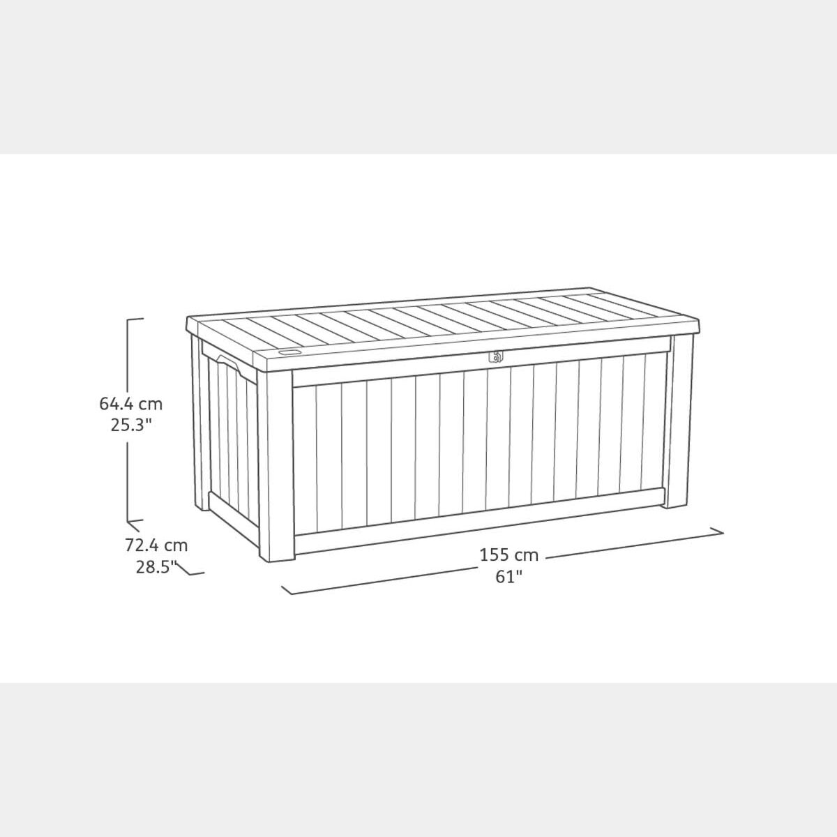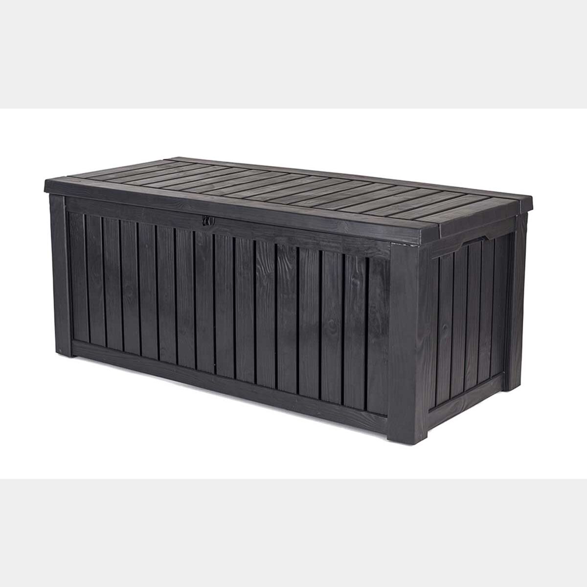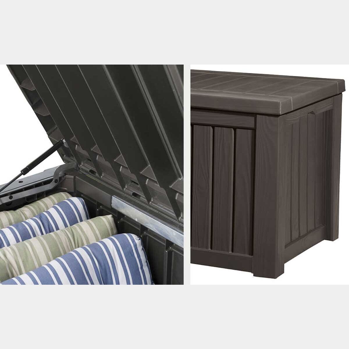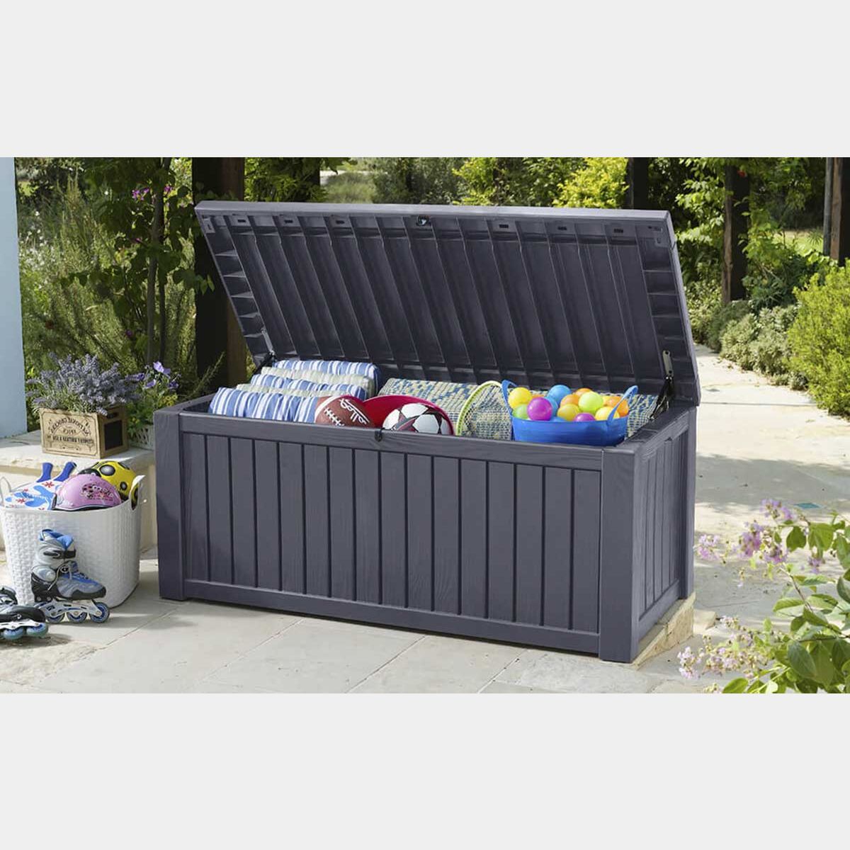 Che sia per riporre attrezzi da giardino, giochi da piscina o cuscini, Tiglio Marrone è la soluzione ideale grazie alla capacità di 570 litri. La comoda seduta sul coperchio per due adulti, rende Tiglio una soluzione versatile e pratica. Realizzato con resina durevole e resistente agli agenti atmosferici con un'elegante finitura effetto legno, mantiene il contenuto asciutto e ventilato aggiungendo, allo stesso tempo, un tocco di eleganza al tuo giardino.