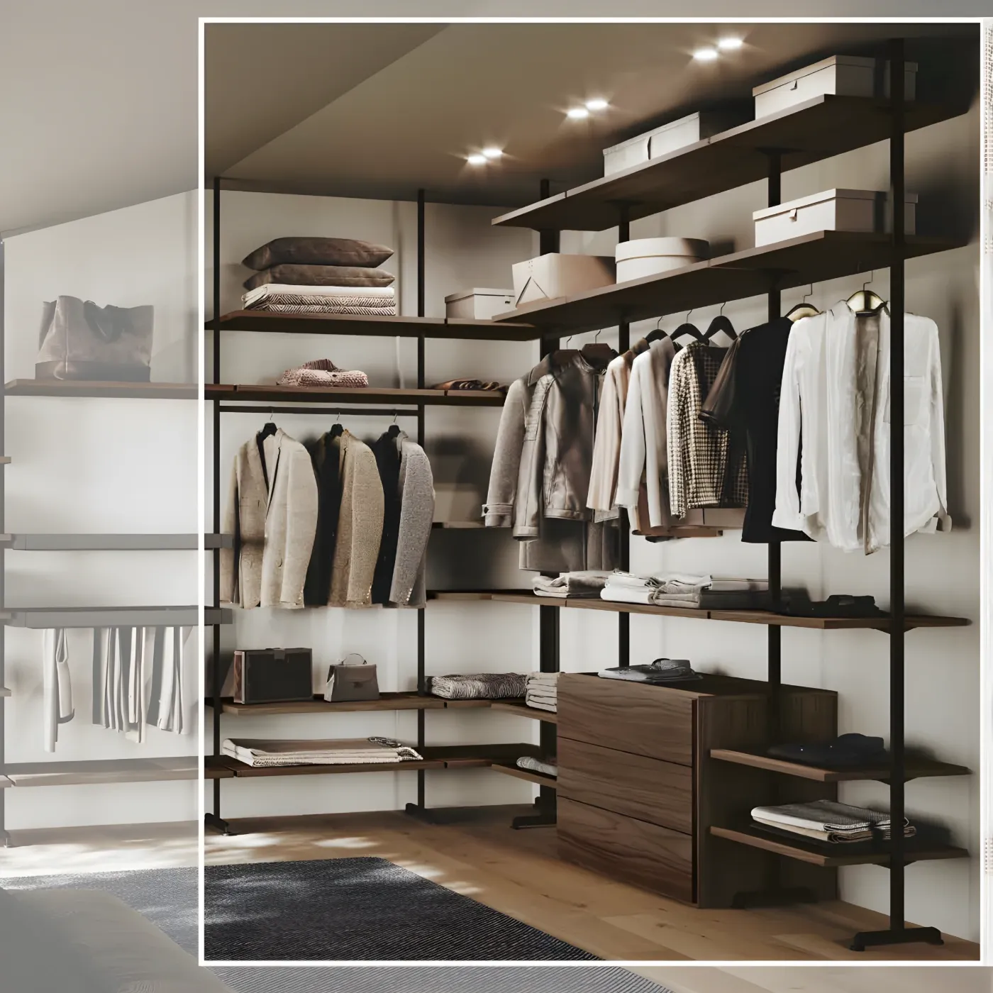La cabina armadio angolare è una soluzione moderna e funzionale, ideale per chi cerca un'alternativa all'armadio tradizionale. Il suo design aperto, la sua modularità e la sua capacità di sfruttare gli angoli la rendono perfetta per organizzare gli indumenti in modo efficiente e con stile.