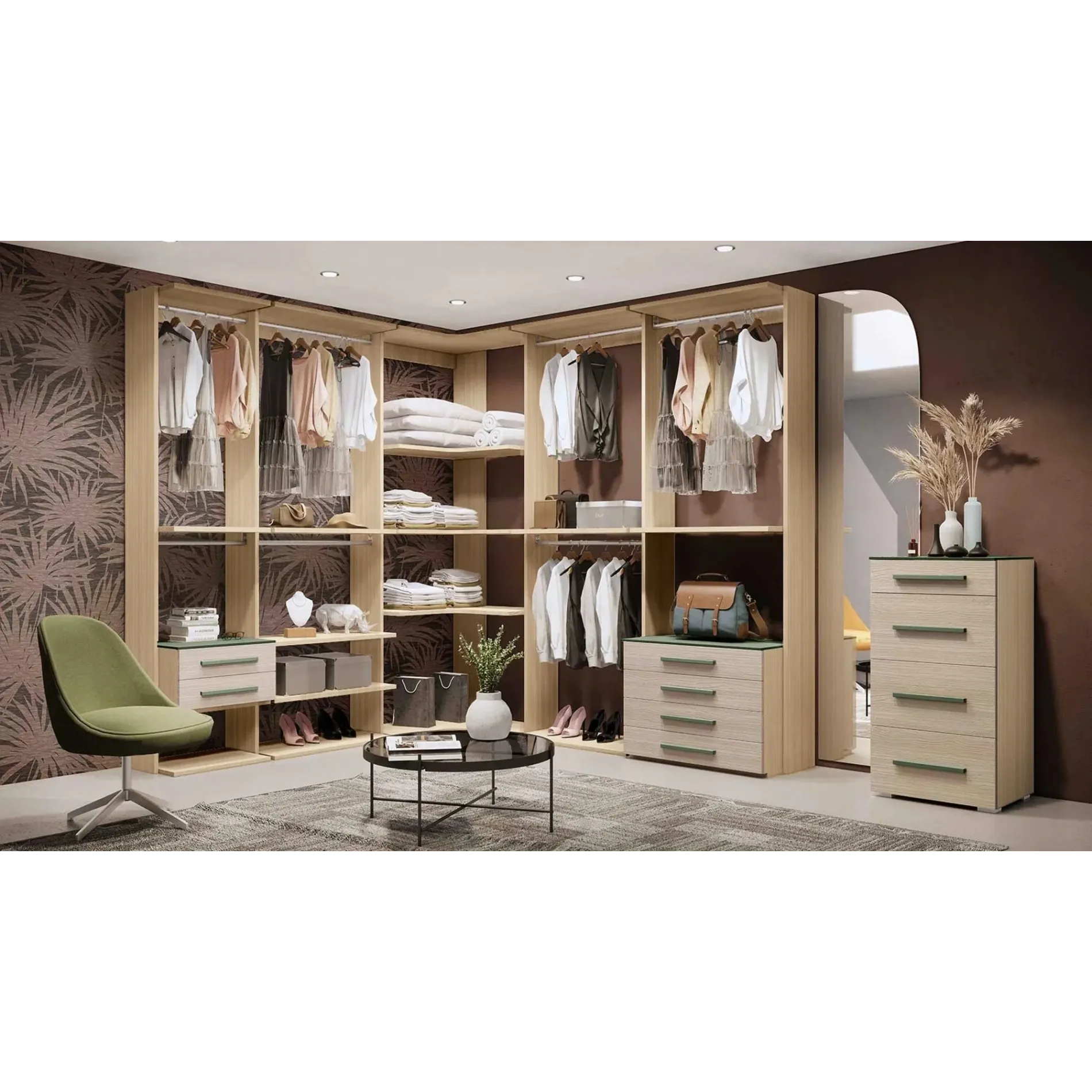 Cabina a giorno angolare per camere da letto, Rovere ambra e Salvia