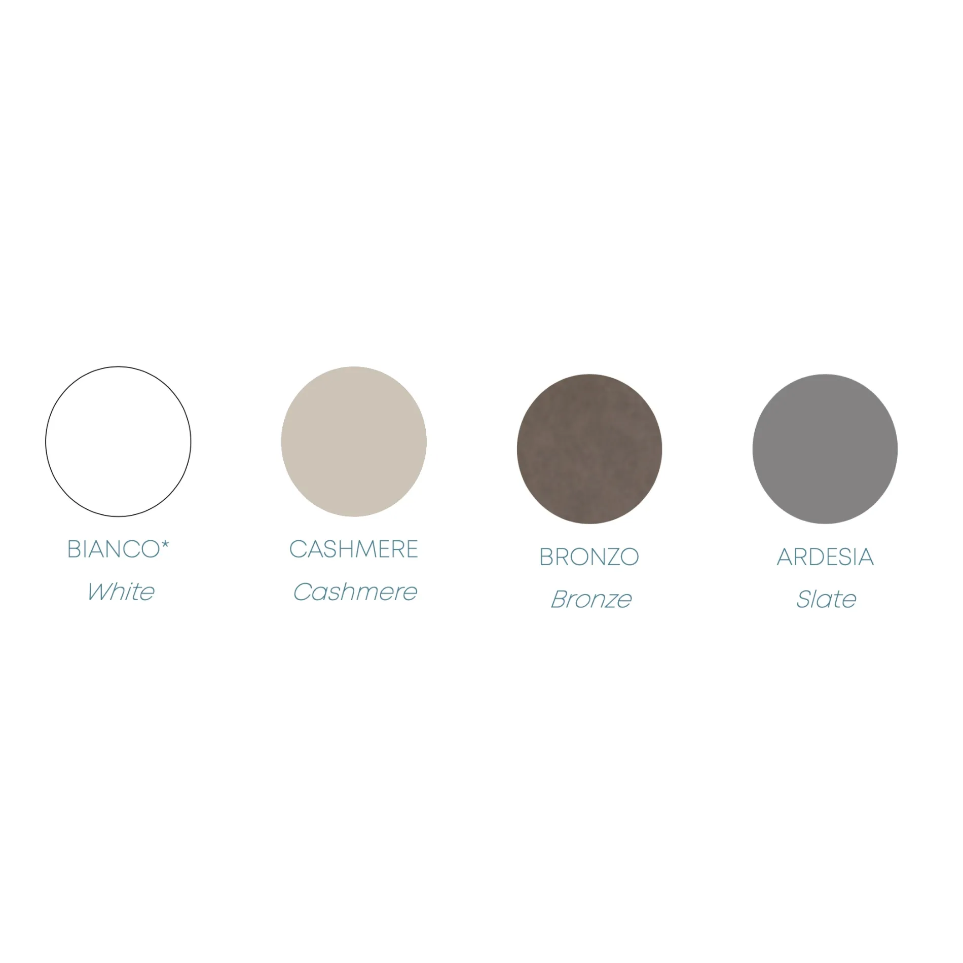 La cabina è proposta con fianchi, tramezzi, ripiani e cassettiere Cashmere, schienale Bianco. Sono disponibili le finiture Bronzo, Bianco e Ardesia per struttura, Grigio per schienale.