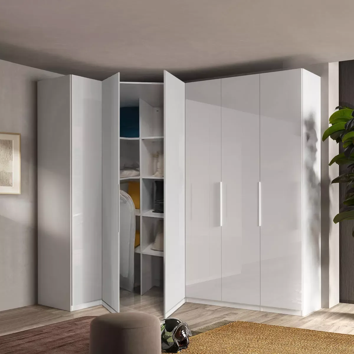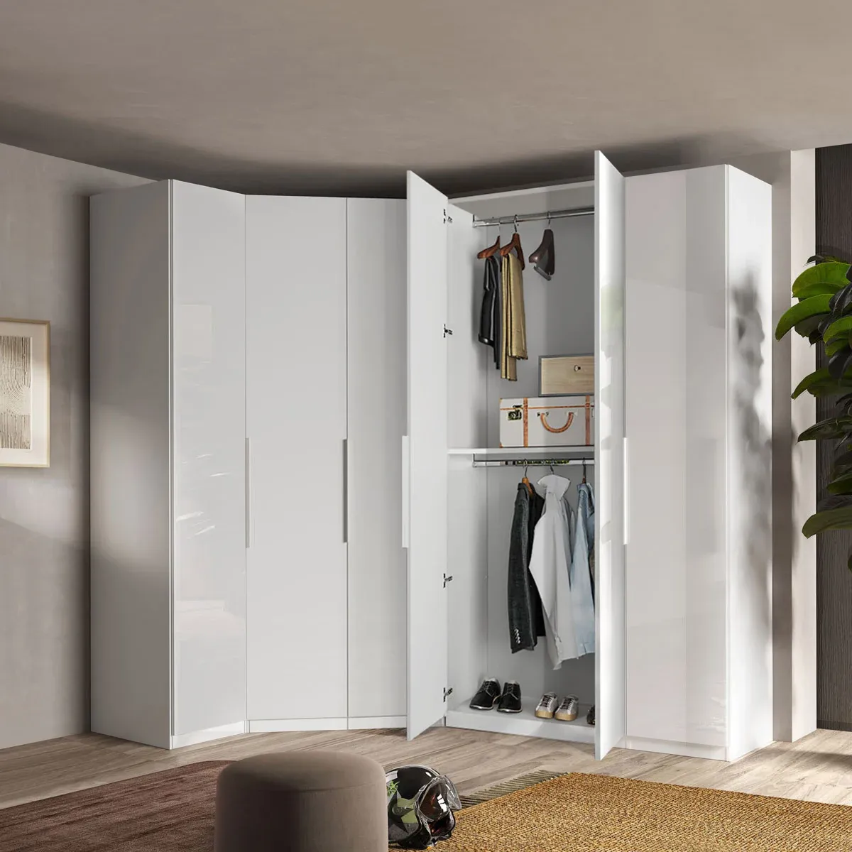 Armadio angolare a 6 ante battenti, 168x240h cm, Bianco lucido