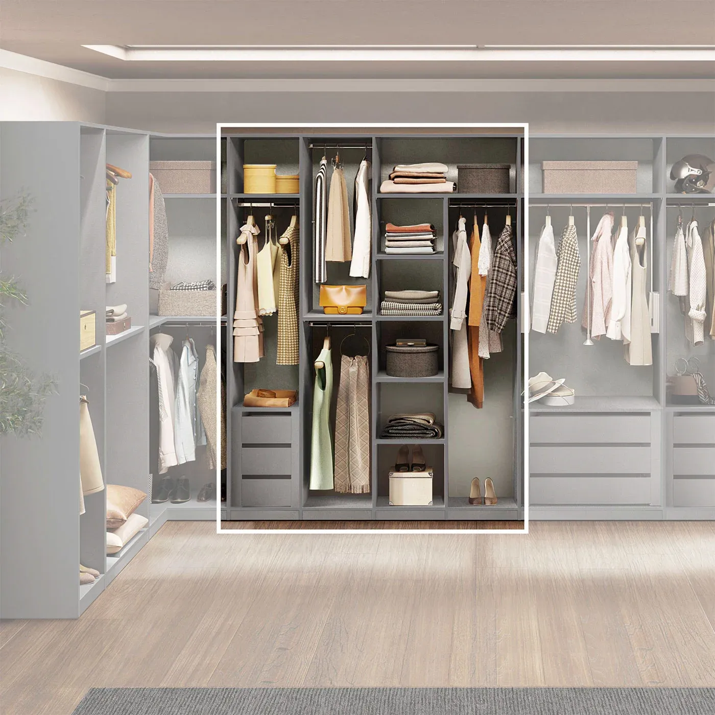 Il design aperto, la modularità e l'organizzazione interna della cabina armadio la rendono perfetta per creare un ambiente ordinato, elegante e personalizzato.