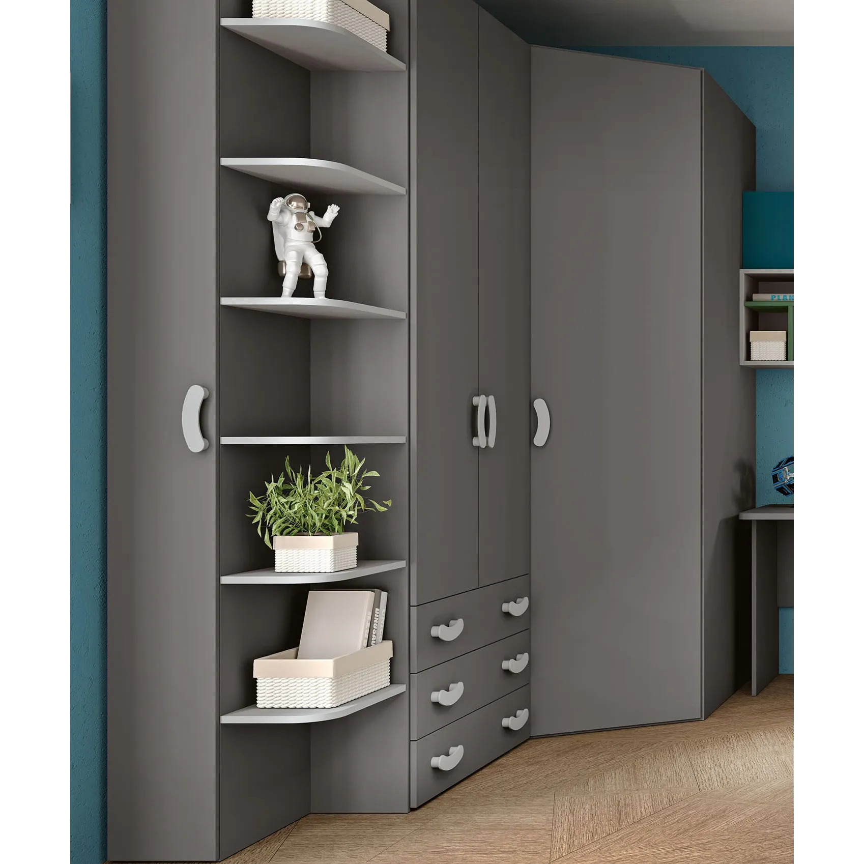 Cabina armadio camerette, finitura Grigio scuro e chiaro
