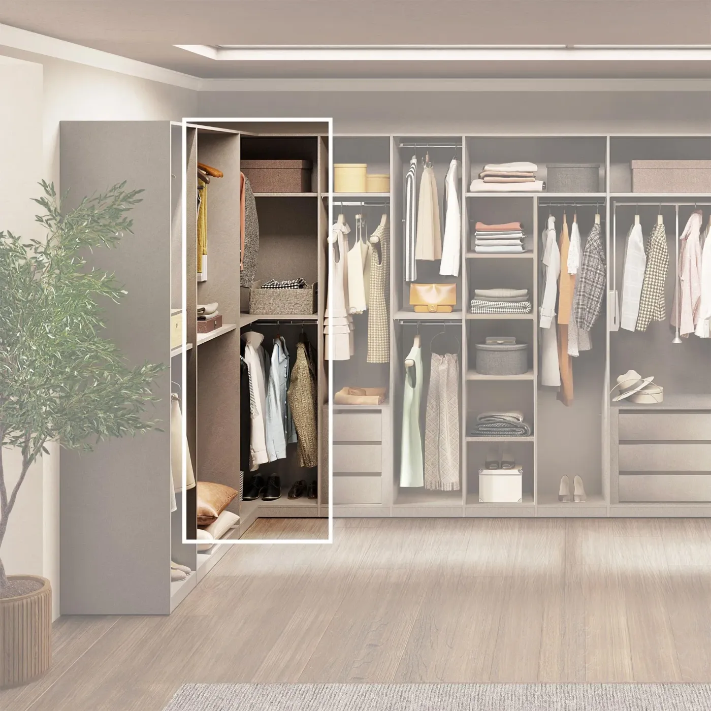 Tramite configuratore è possibile sostituire la finitura con altri colori disponibili a campionario, per adattare al meglio la cabina a giorno alla propria zona notte.