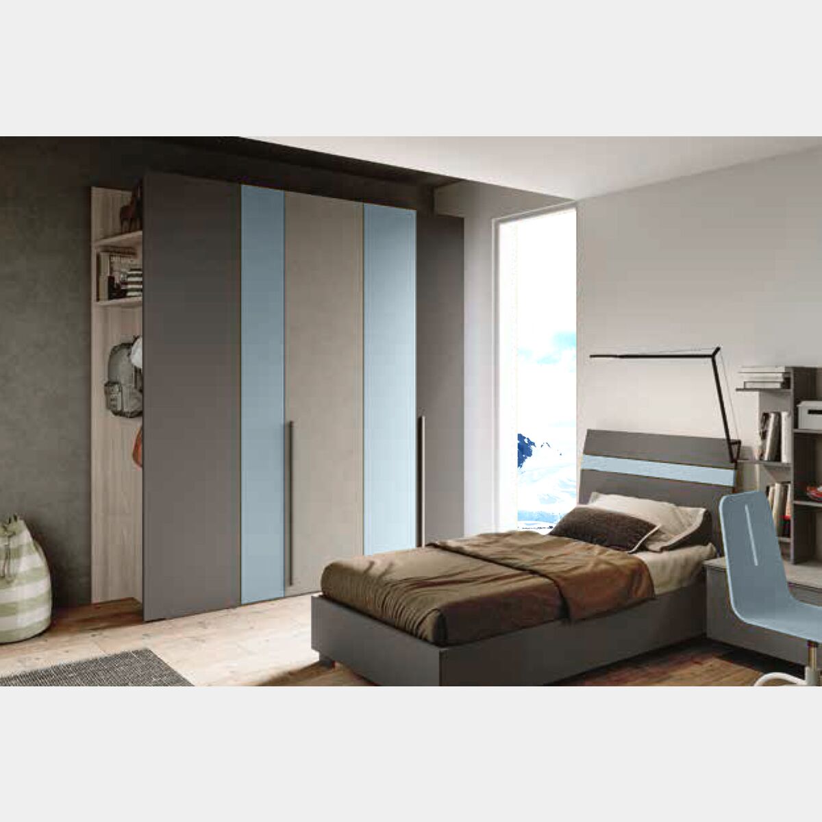 Le fintiure proproste sono Grigio cenere, Grigio seta, Carta da zucchero e Olmo natura per la struttura dell'armadio, è possibile modificare le finiture per creare una cameretta personalizzata, il linea con lo stile del tuo bambino!