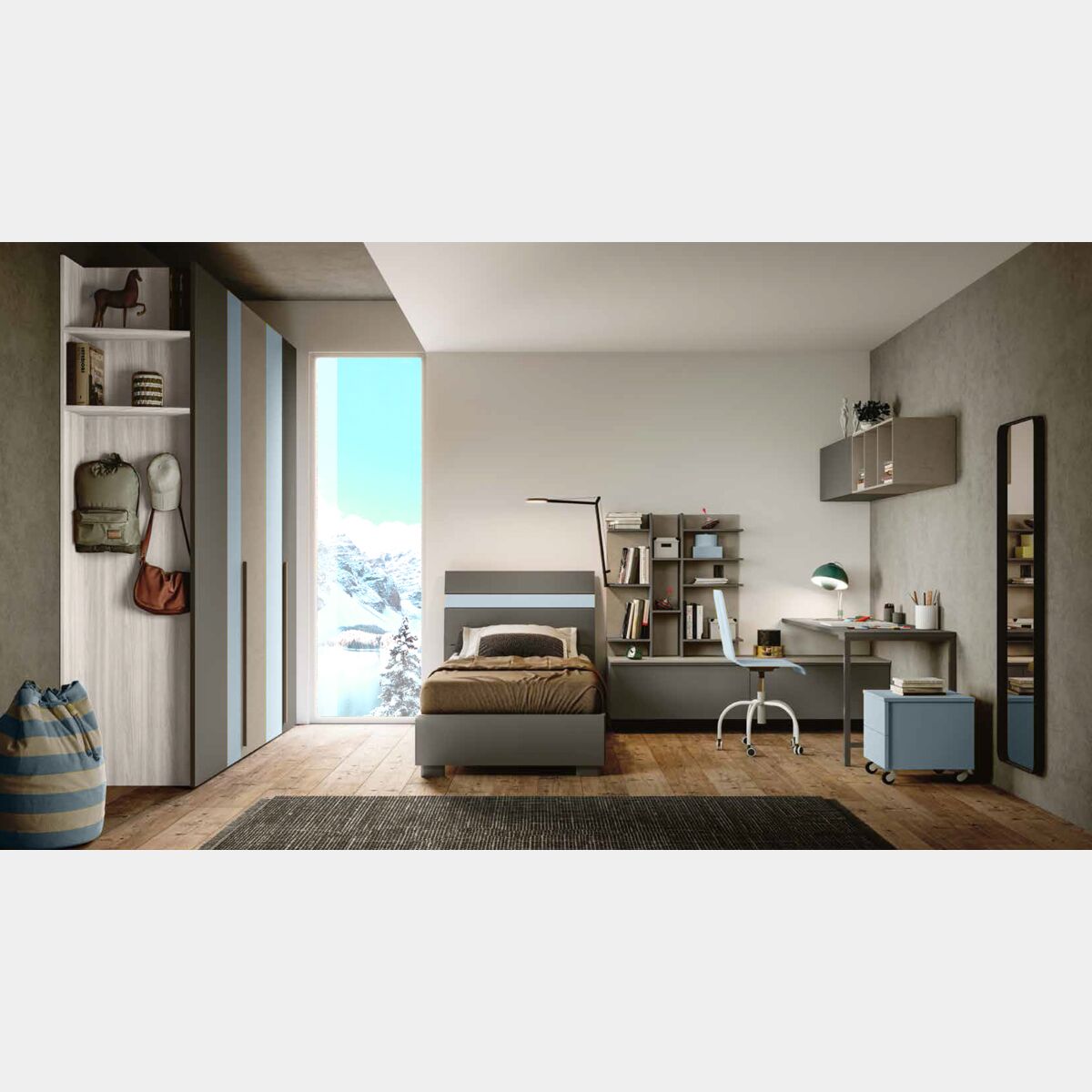 Una cameretta frizzante e divertente per accogliere e stupire i più piccoli: pensata per far crescere il bambino in totale comodità e offrire sempre tutto il comfort di cui ha bisogno. La cameretta è dotata di armadio, letto, comodino con ruote, base sospesa e scrivania.