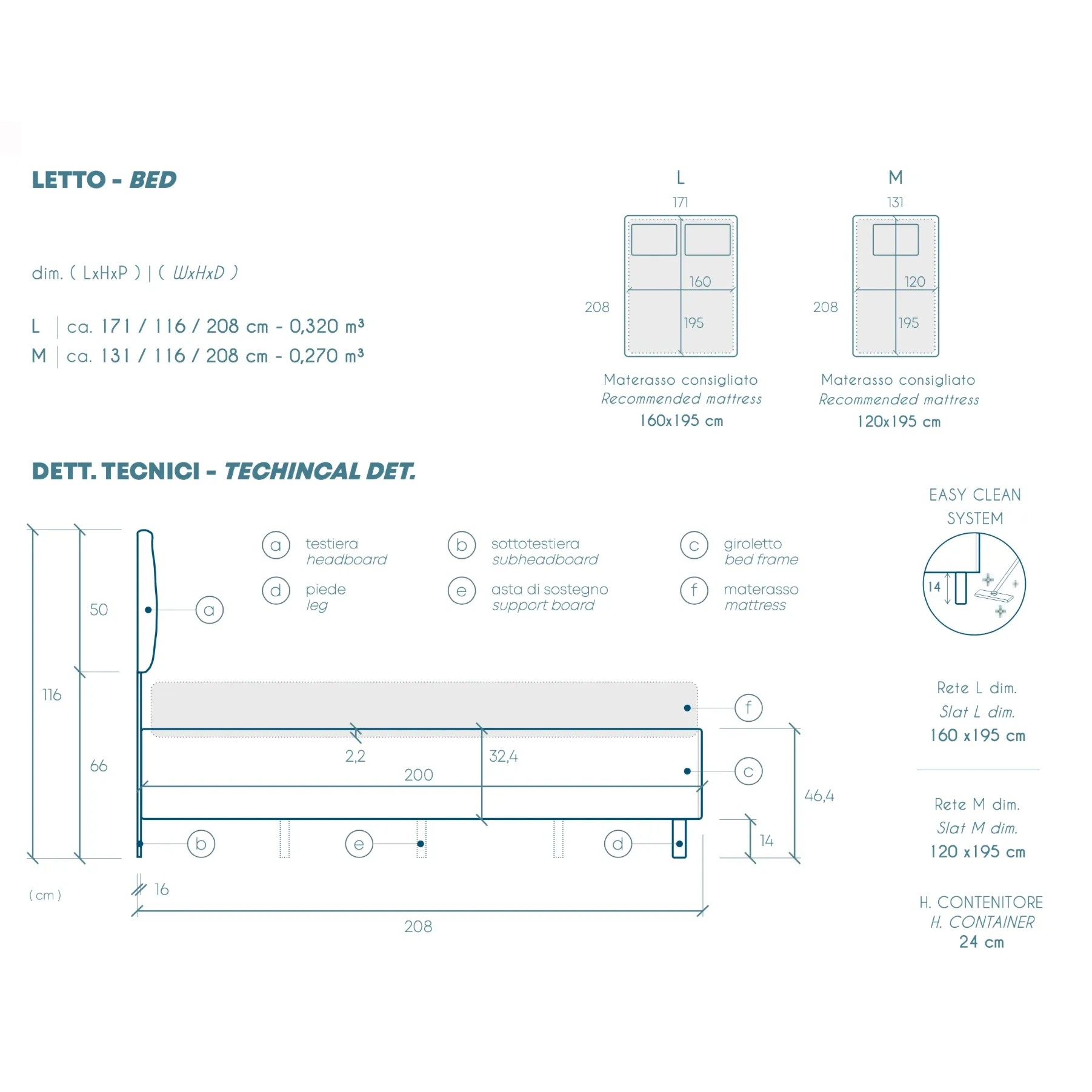 Letto: L.171 H.120 P.208