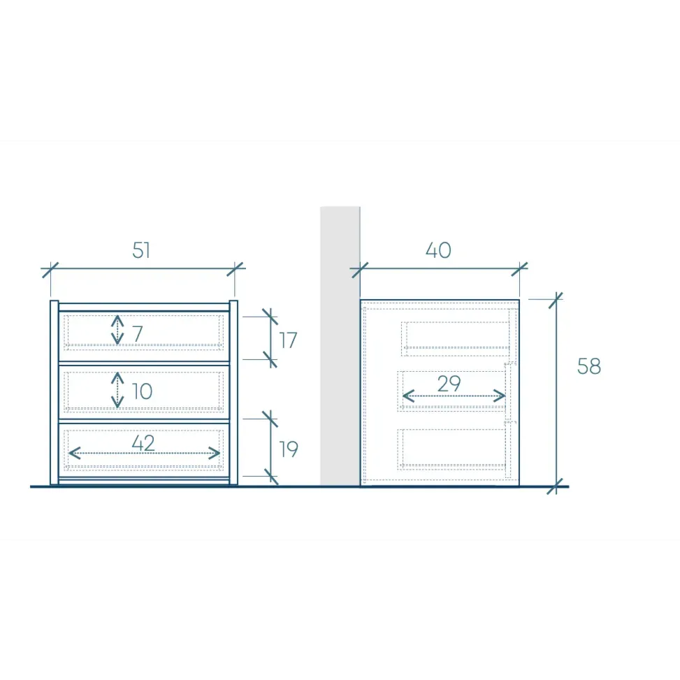 Comodini: L.52 H.58 P.40