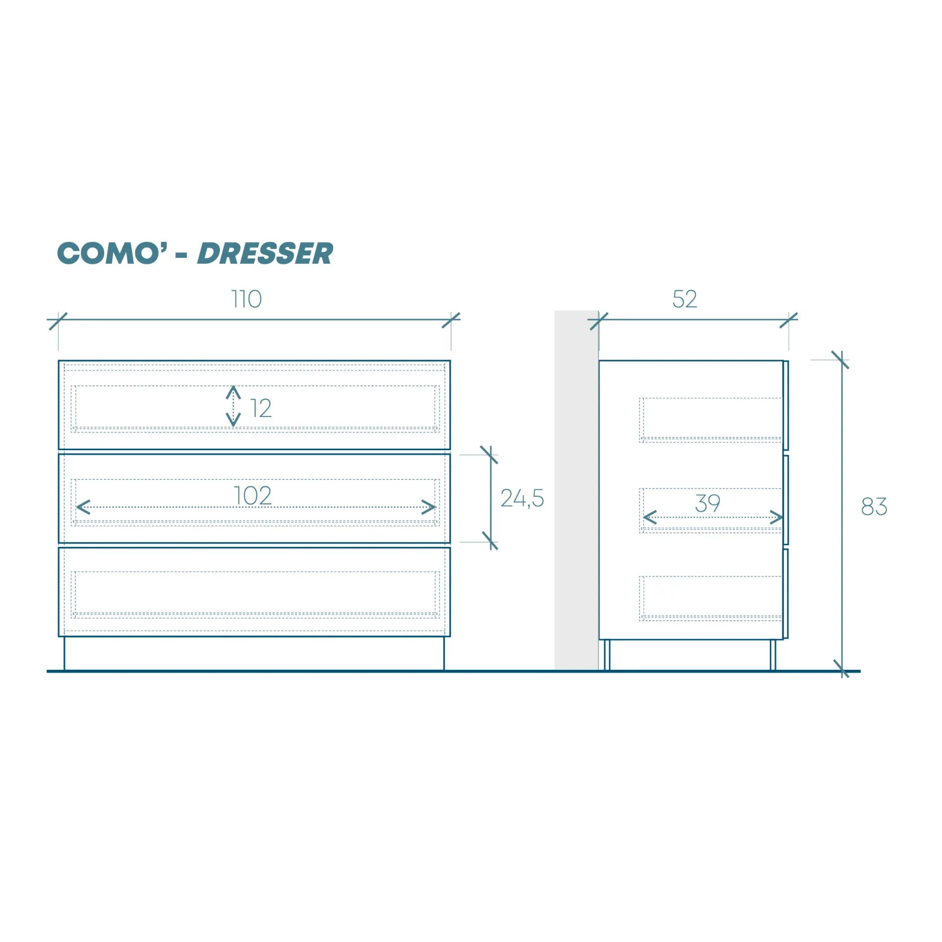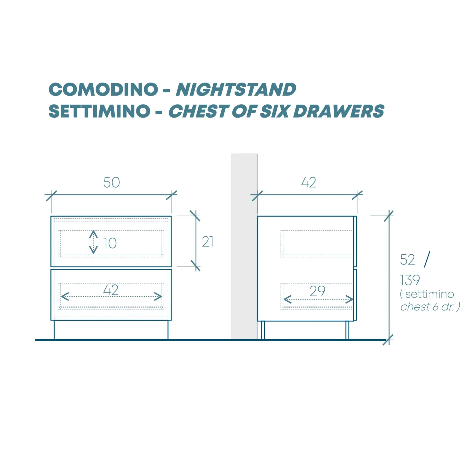 I comodini sono dotati di due cassetti, struttura e frontali sono Bronzo mentre il top è Mercure. L'apertura avviene tramite sottile maniglie dal design moderno.