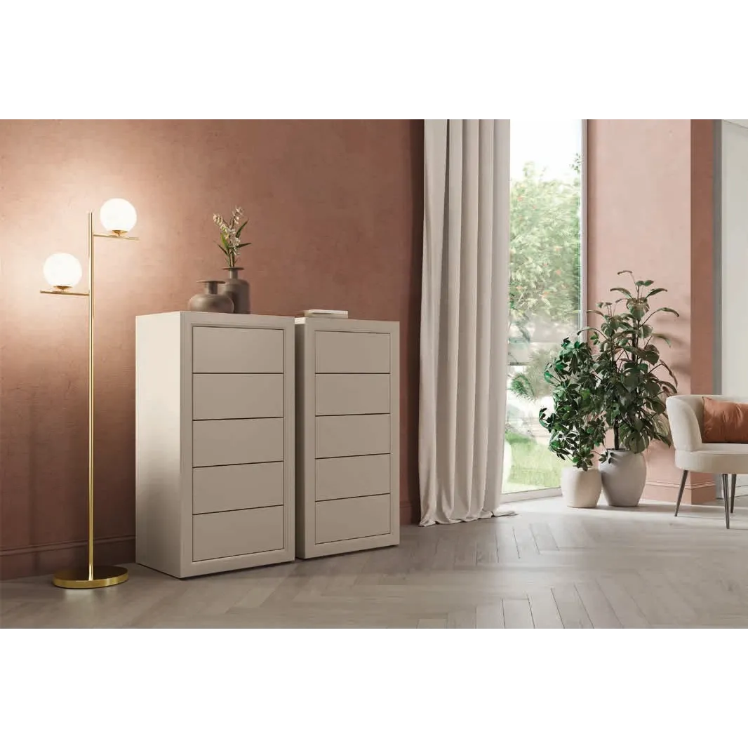 I comodini presantano due cassetti, dotati di apertura push-pull, e piedini regolabili H.1 cm. Pratici, funzionali e assicurano spazio contenitivo ed un piano d'appoggio per oggetti vari.