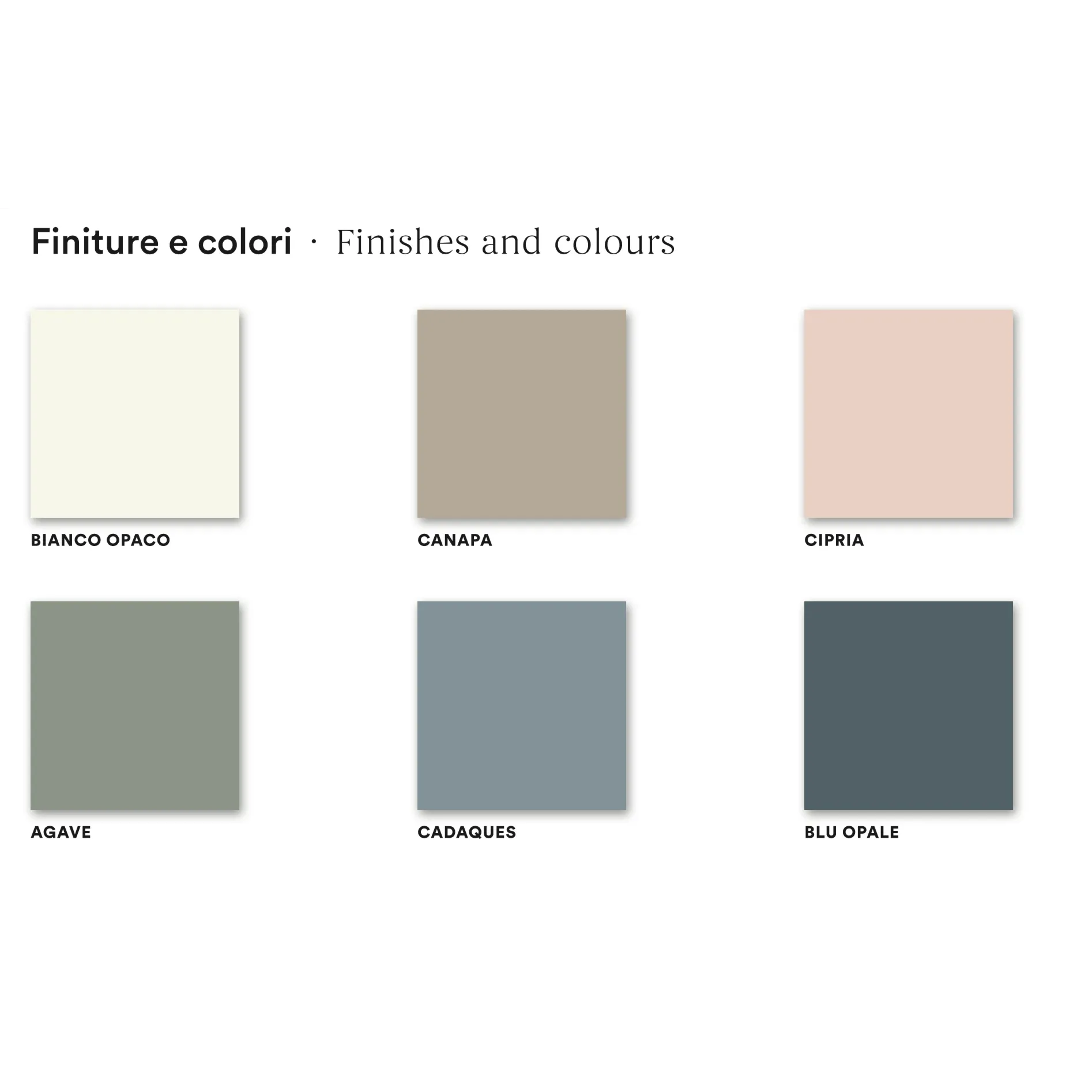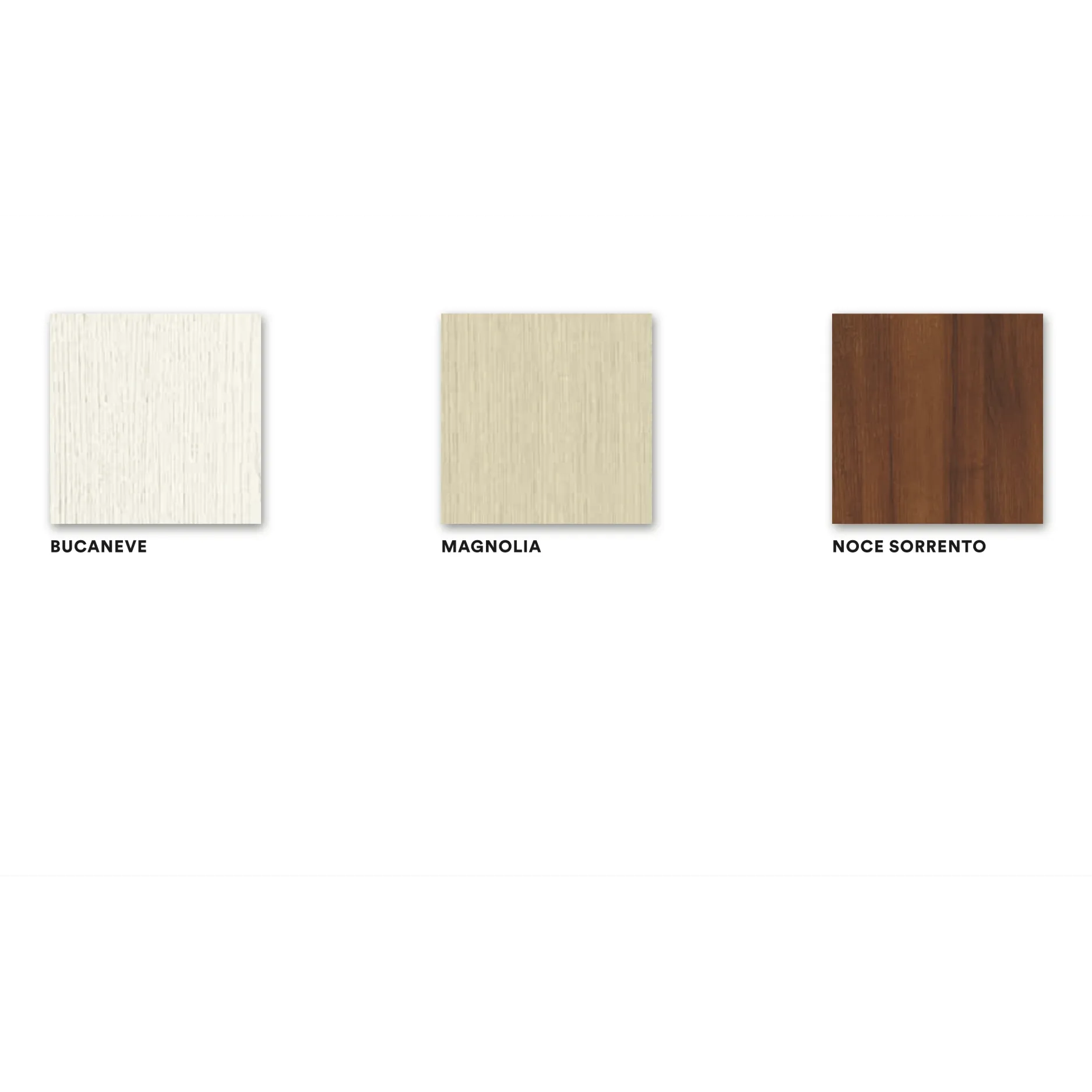 Le finiture proposte Bucaneve e Canapa contribuiscono a rendere l'ambiente caldo e armonioso, tramite apposito menù a tendina è possibile sostituire le tinte, per adattarle alla propria camera da letto.
