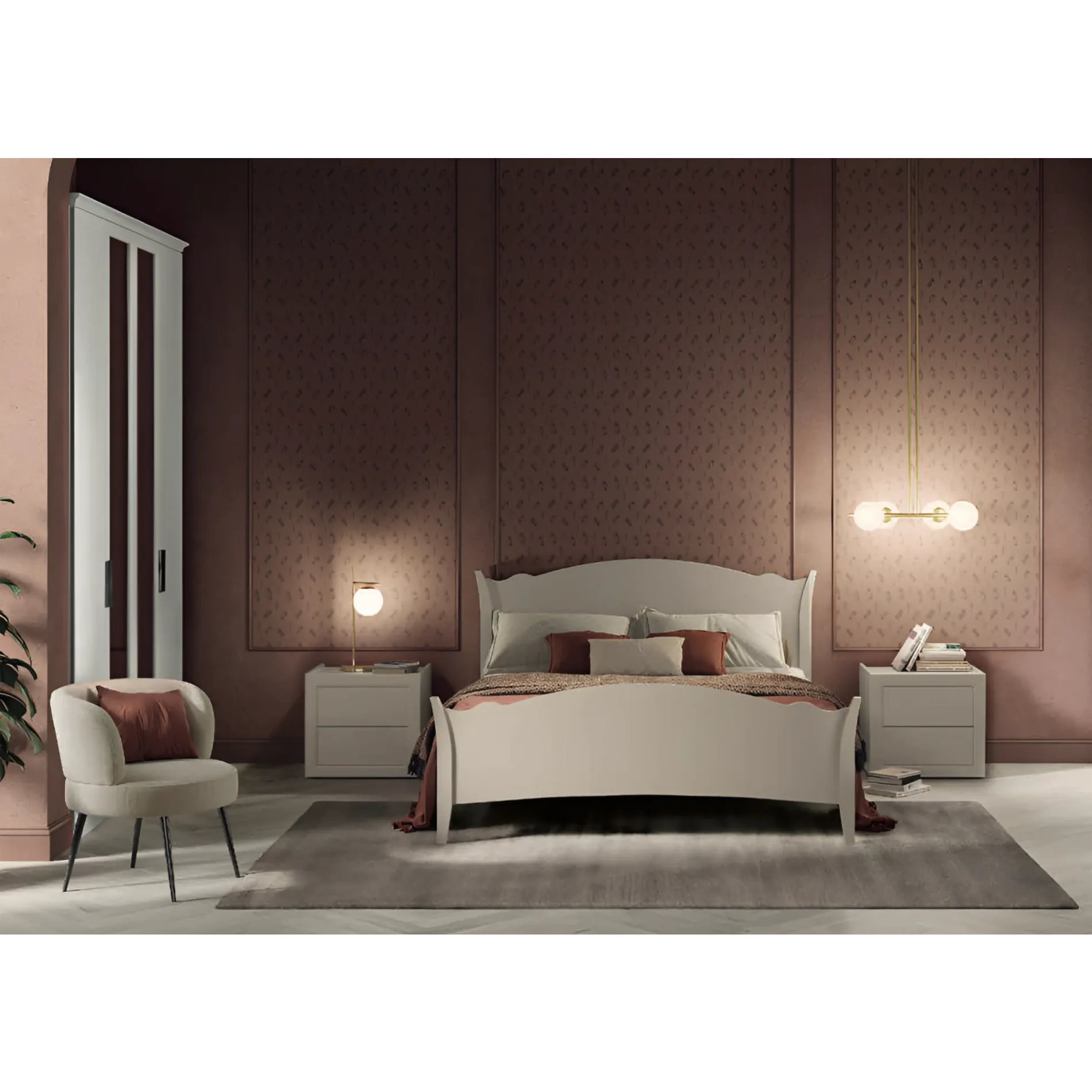 Camera da letto composta da un armadio battente, un letto ed una coppia di comodini in finitura Bucaneve e Canapa. Scopri tutte le camere classiche!
