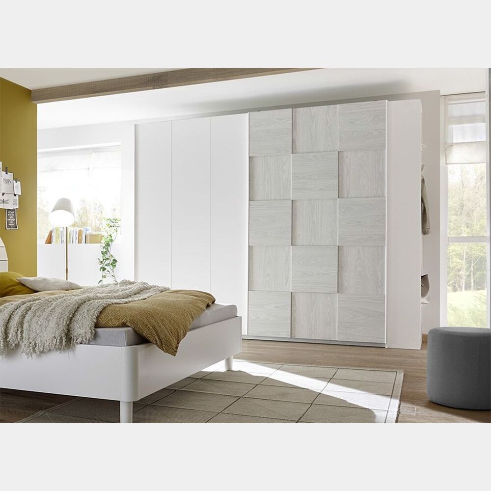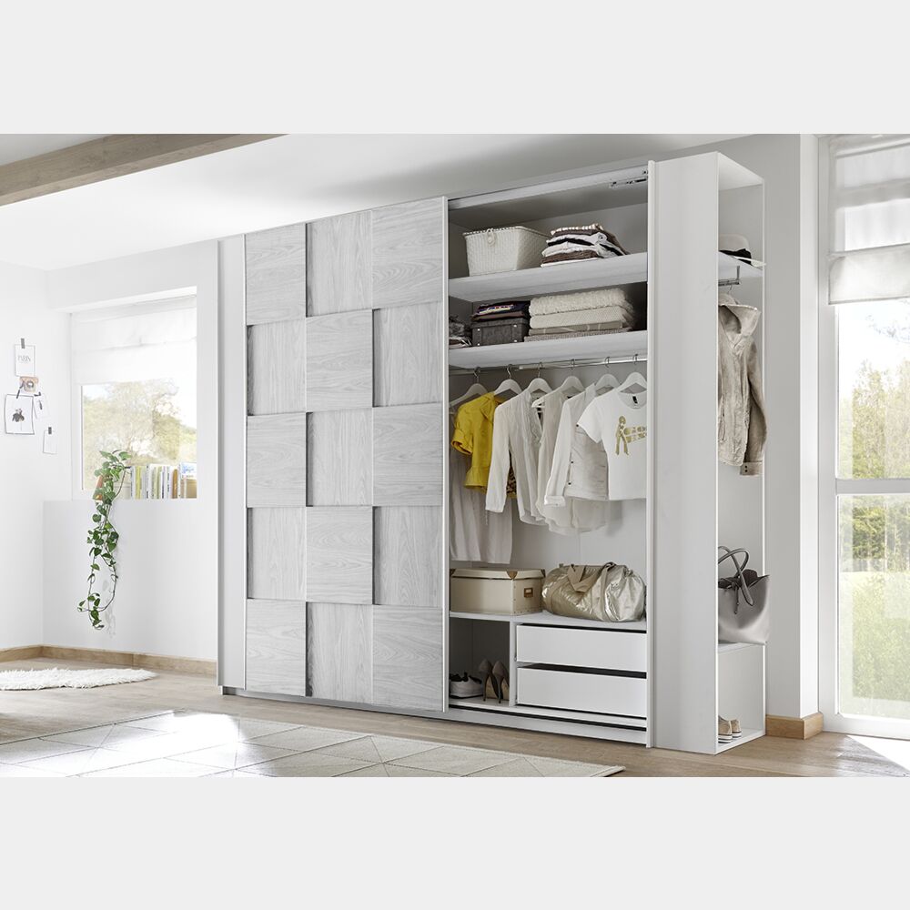 - Armadio Miss a 2 ante scorrevoli in colore bianco opaco e grigio: L.243 H.205 P.57 cm