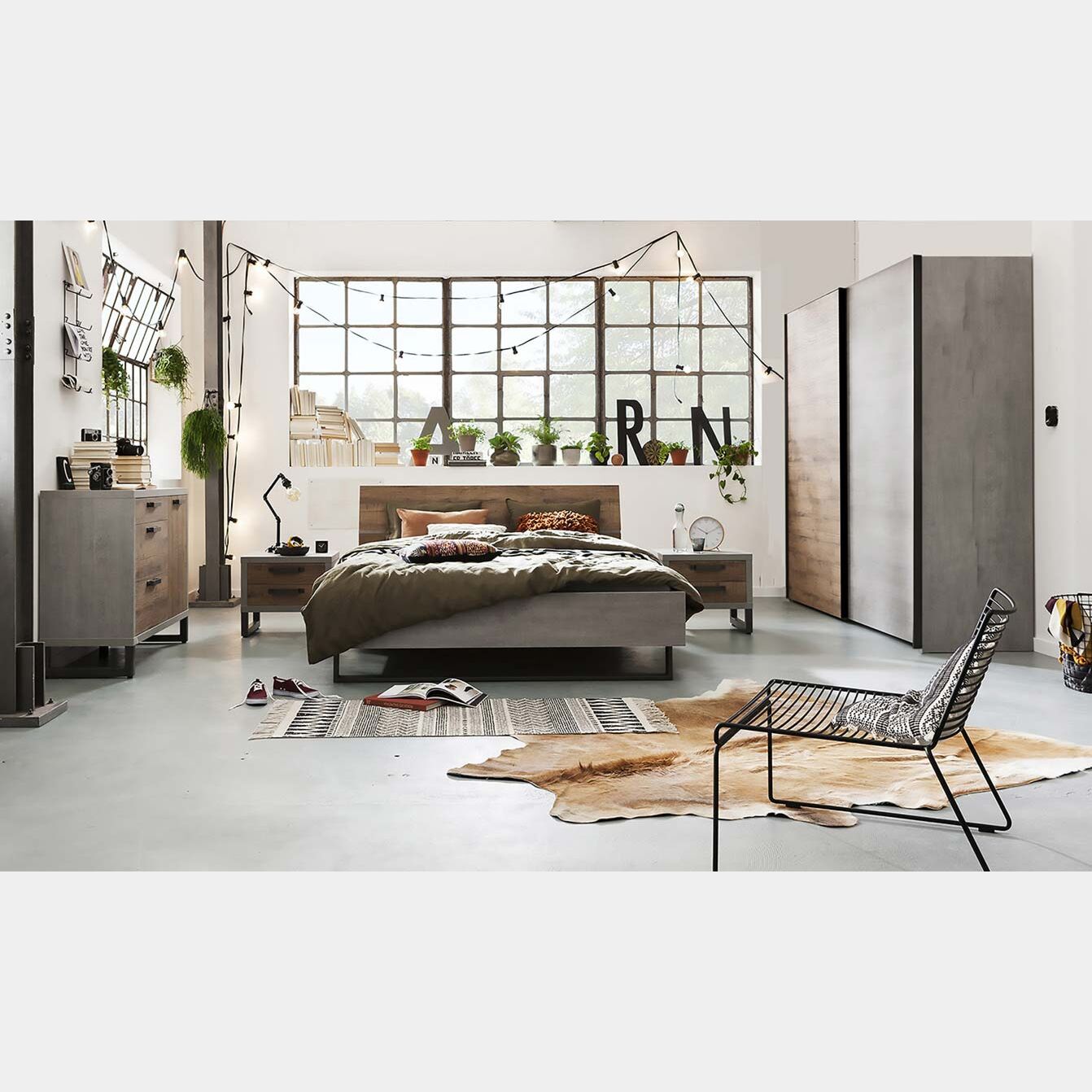 Camera completa Industry in finitura Rovere e Grigio smoke