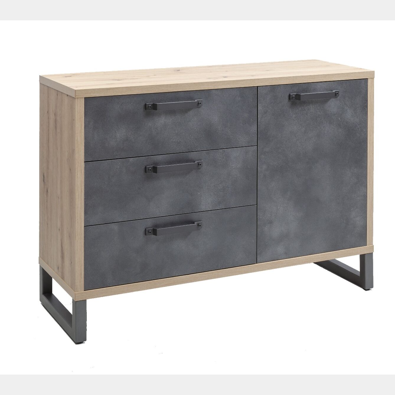 Camera moderna stile Industry in finitura Rovere e Grigio smoke.