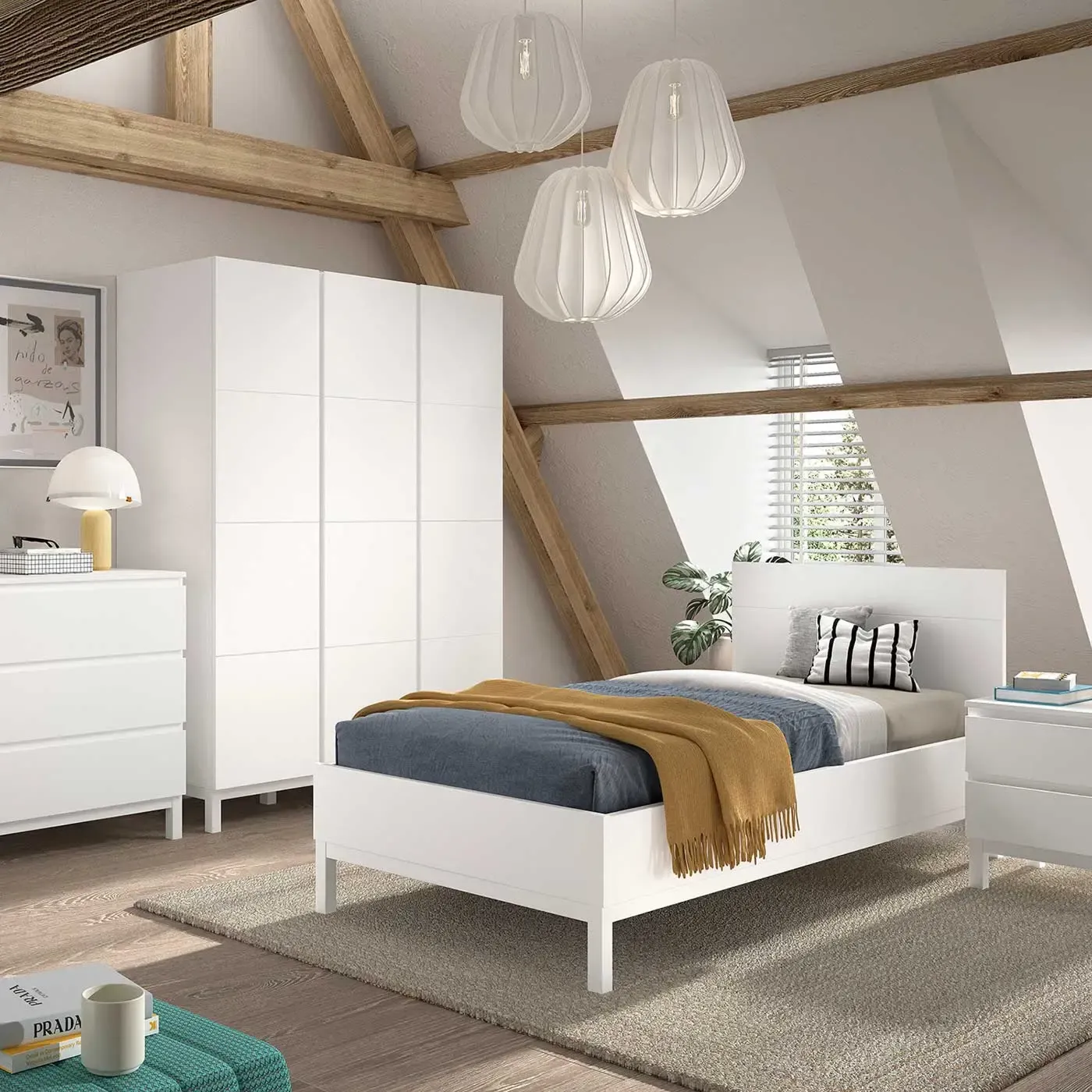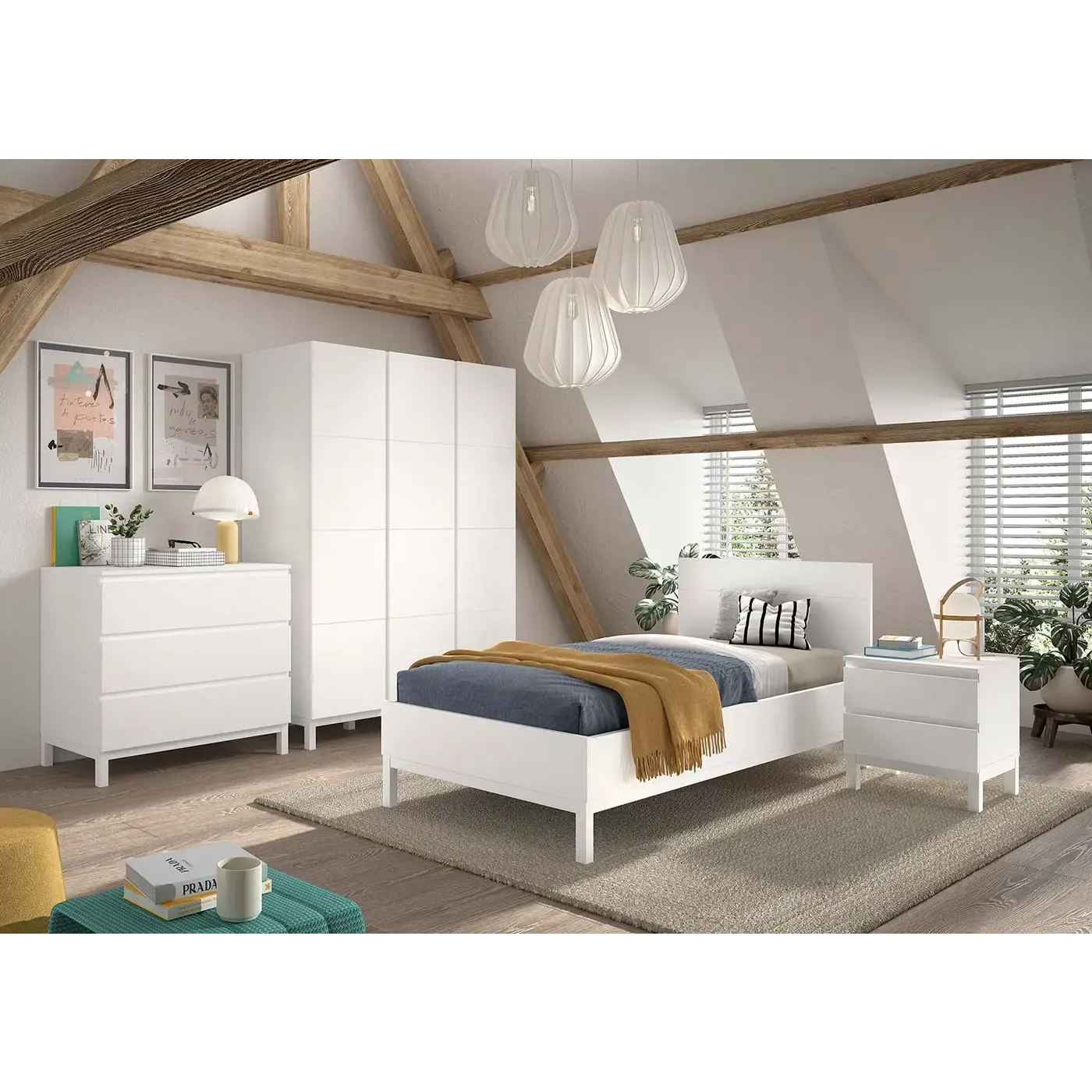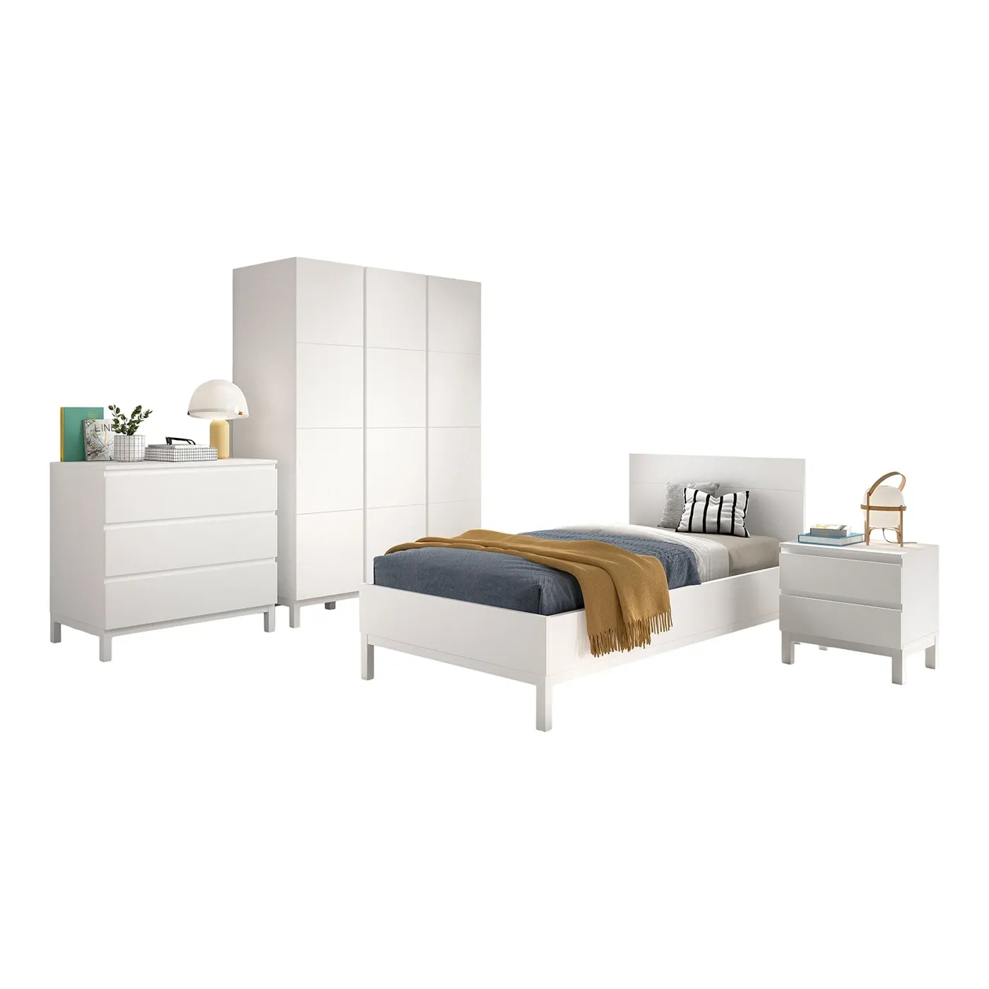 Essa si compone di un letto non dotato di rete a doghe avvolgibile o di una struttura a telaio, ma comunque capace di offrire la massima comodità desiderabile; un comodino con 2 spaziosi cassetti a chiusura ammortizzata; un armadio a 3 ante con un ripiano e un appendiabiti presenti in quelle laterali e 4 ripiani aggiuntivi nella parte centrale, ideali per riporre vestiti, biancheria da letto e altro ancora; infine, una cassettiera dotata di 3 cassetti anch'essi a chiusura e anche di un sistema antiribaltamento.
