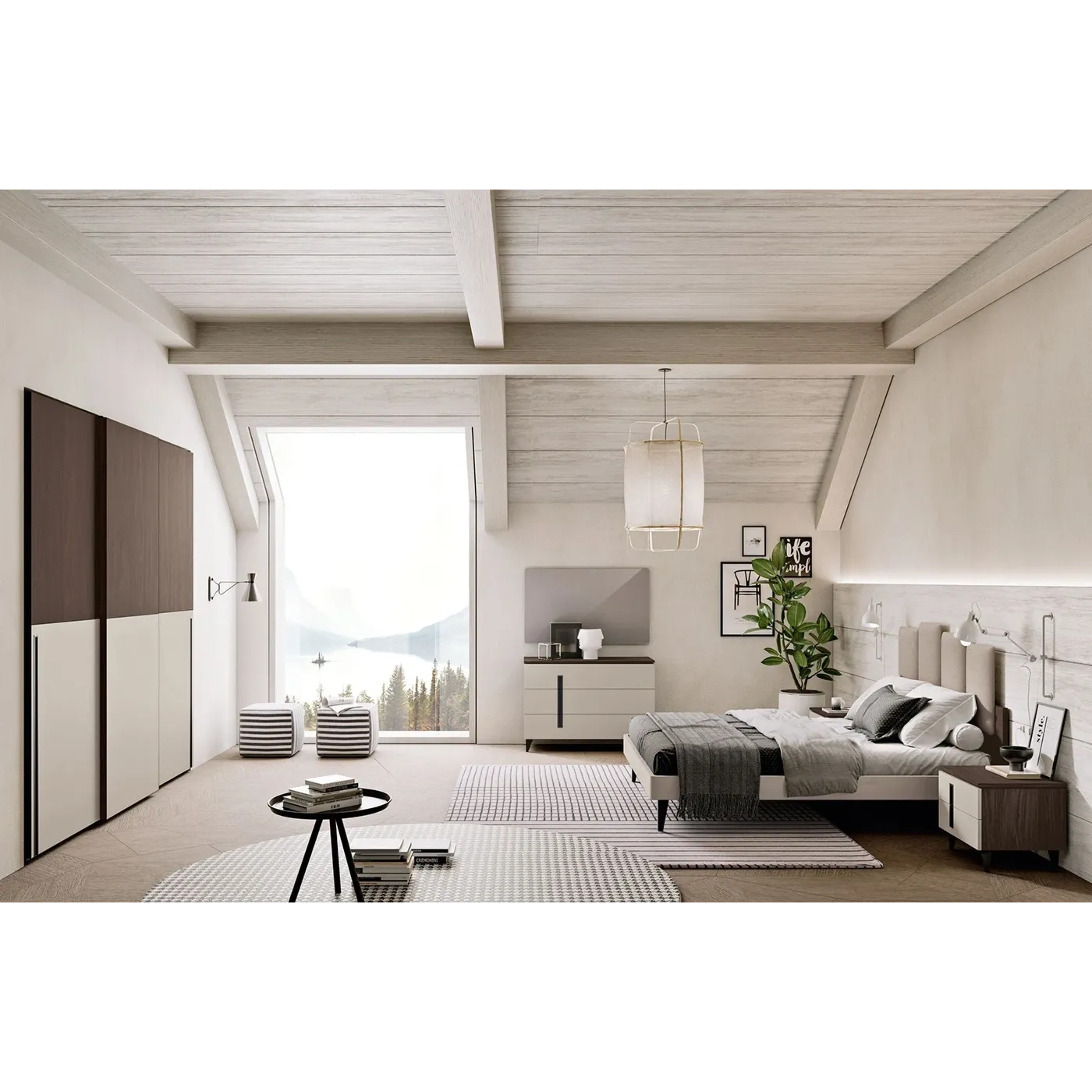 Camera con armadio scorrevole e letto imbottito, Corda e Noce Vanguard