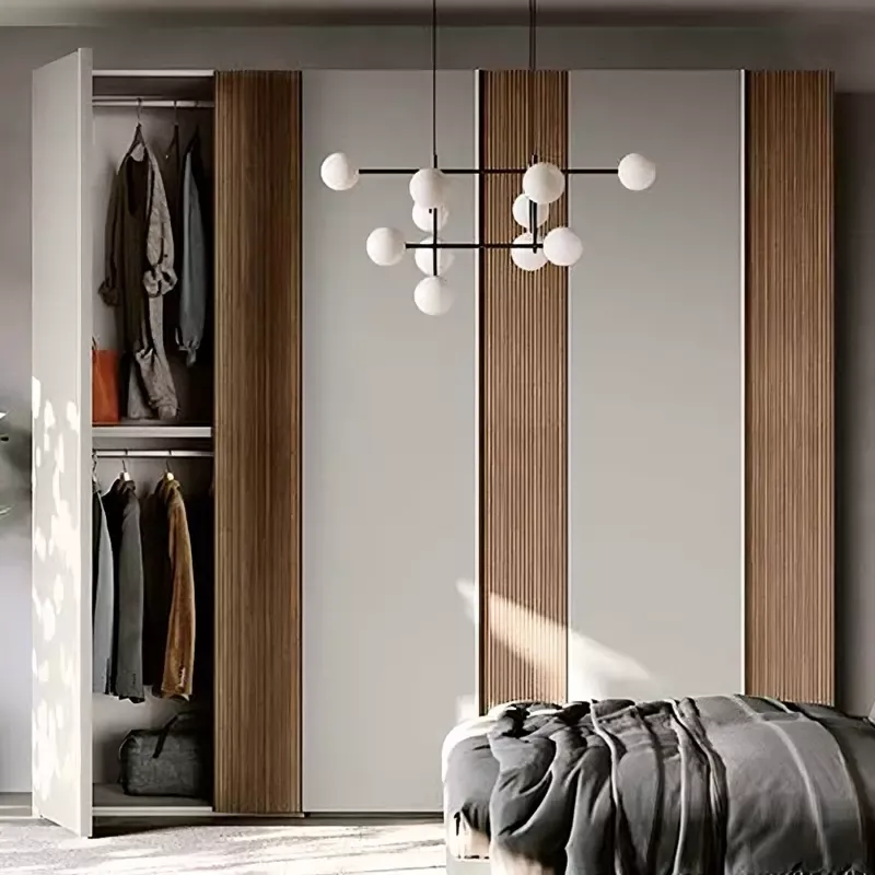 • Struttura armadio: Fianchi e tramezzi sono realizzatI in pannelli di particelle di legno classe E1 di spessore 18mm e sono predisposti di forature per fissaggio ferramenta. Ante spessore 18 mm con cerniere ammortizzate