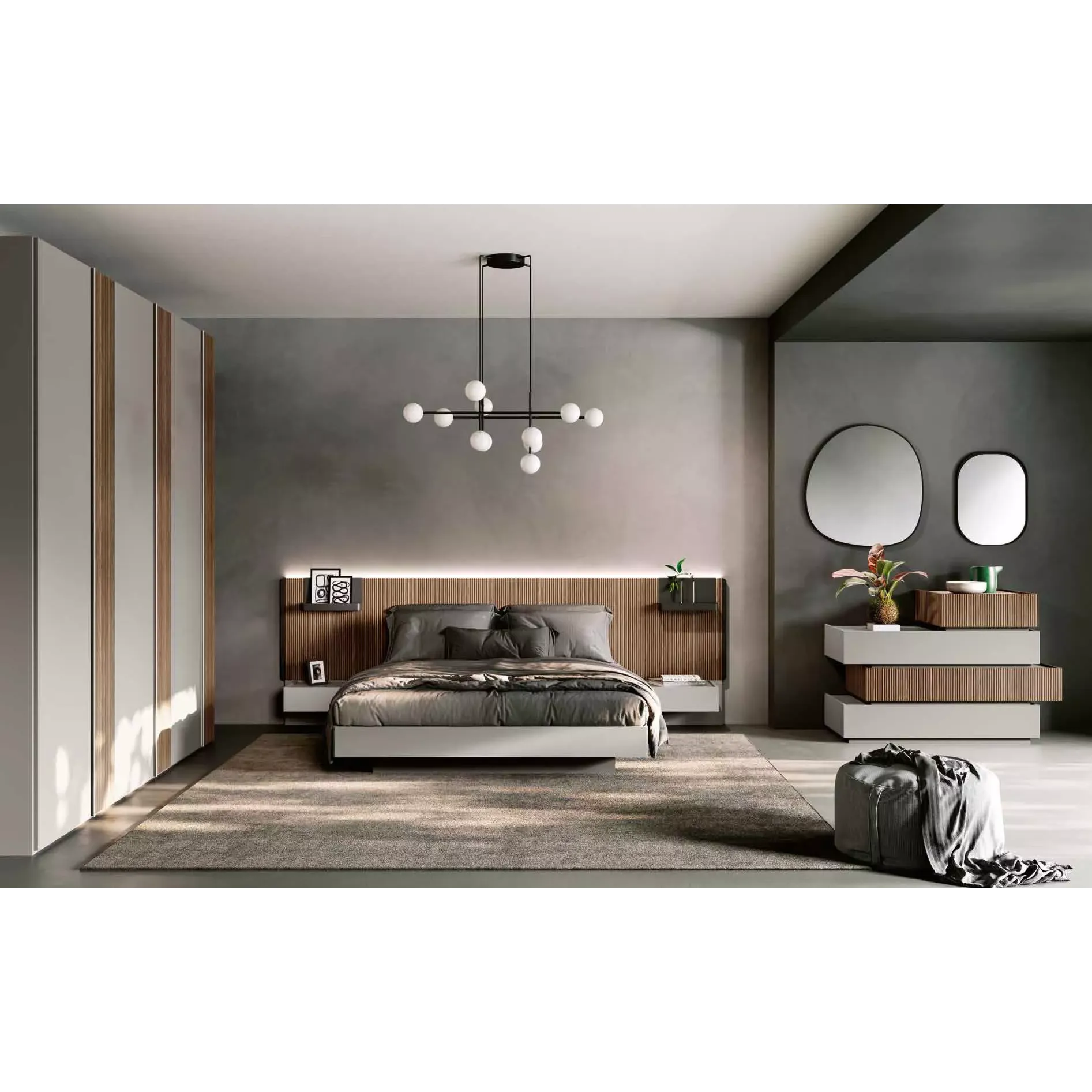 I due comodini sospesi (optional) ne completano il design per offrire la massima praticità durante le ore di riposo