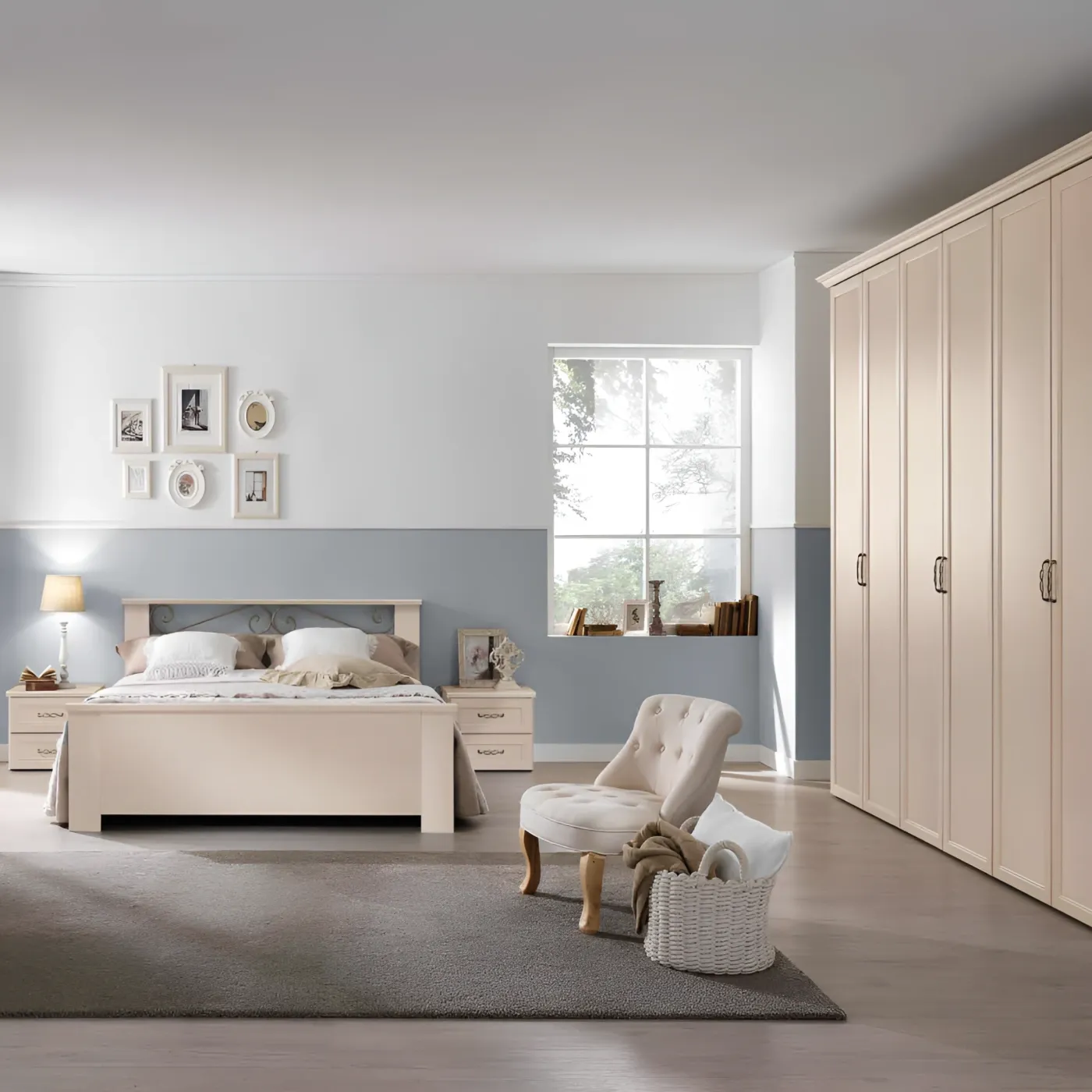 La camera classica è composta da un letto matrimoniale, coppia di comodini e armadio 6 ante, proposta in Beige patinato. Scopri tutte le camere classiche!