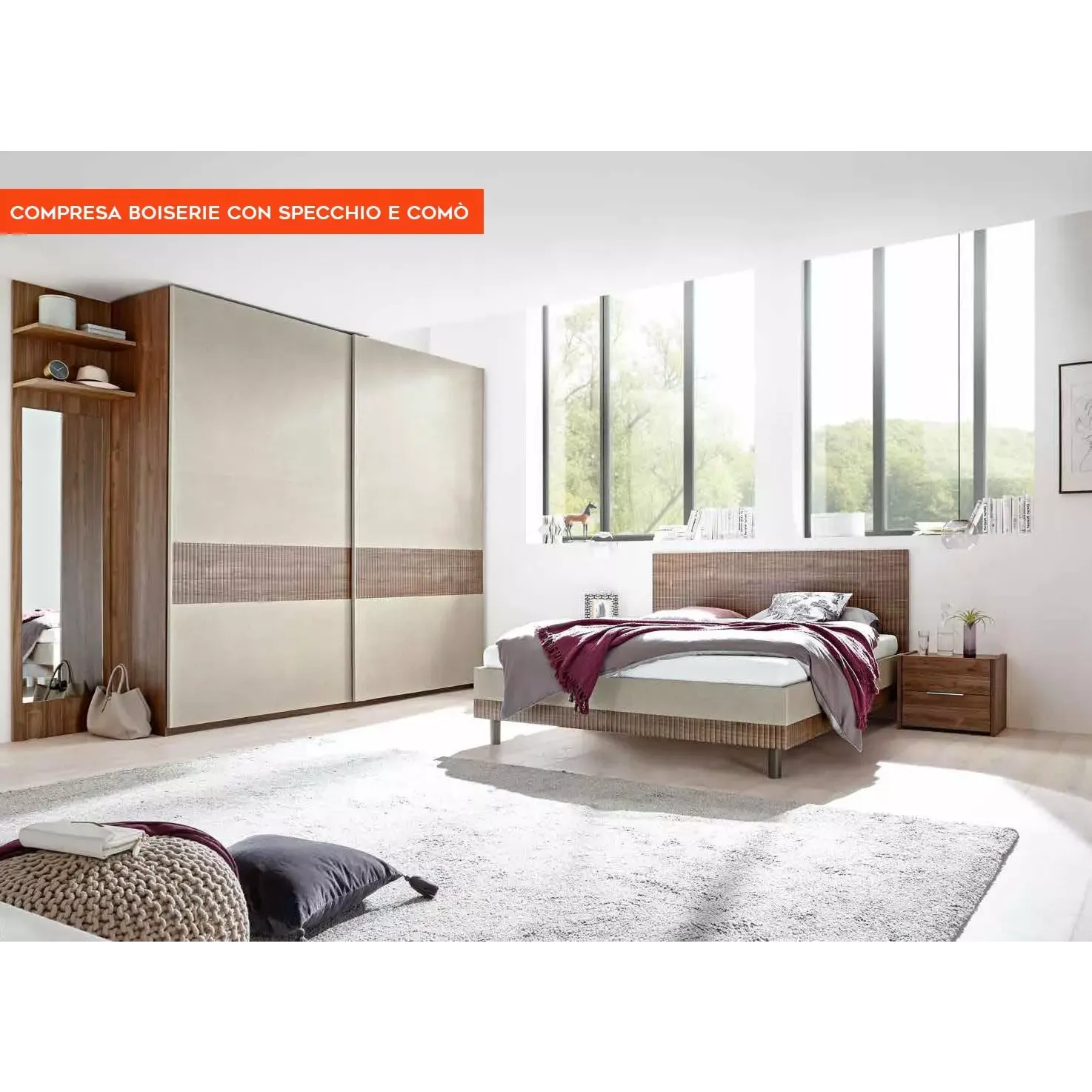 Camera matrimoniale completa, Noce scuro serigrafato e Argilla, con boiserie con specchio