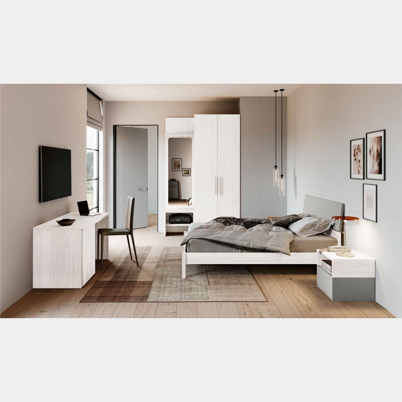 La camera matriomoniale è composta da un letto a due piazze, un armadio con boiserie a due ante battenti, un comodino ed una scrivania. Le finiture proposte sono Bianco altea e Grigio argento, accostamento che crea un piacevole impatto nell'ambiente; tramite apposito configuratore è possibile personalizzare le tinte per creare una soluzione personalizzata.