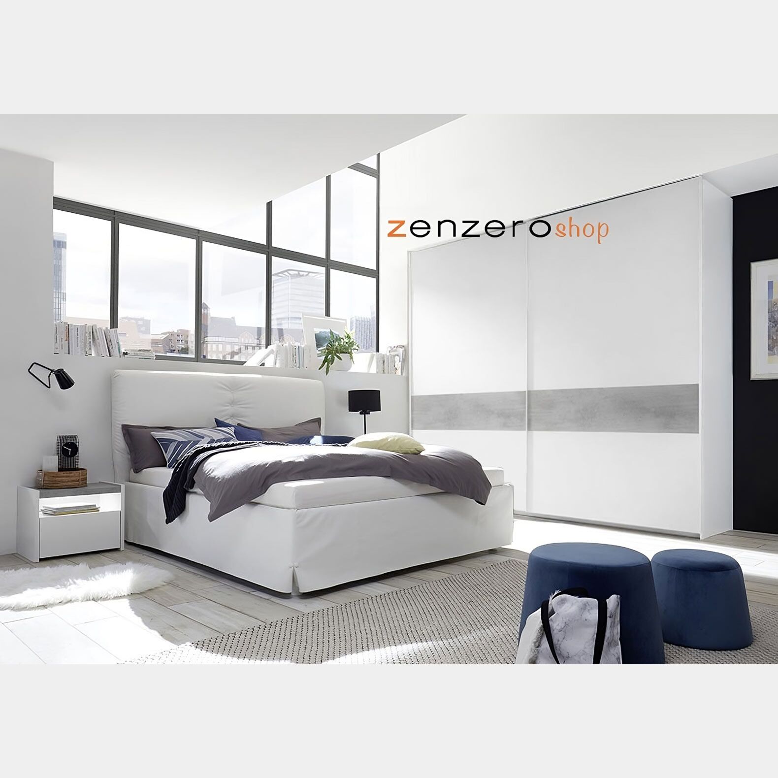 La camera matrimoniale moderna in finitura Bianco opaco e Beton è composta da: