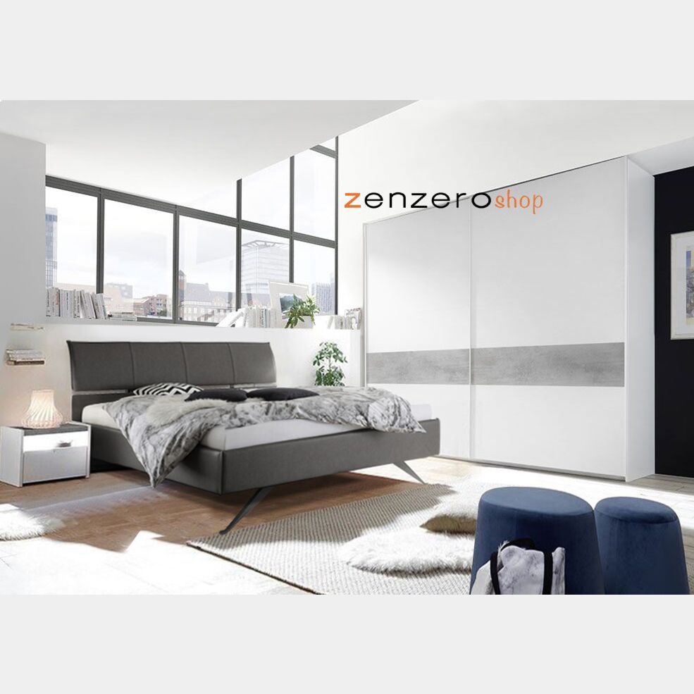Camera matrimoniale Moderna e Conveniente. Completa e disponible nella finitura Bianco opaco e Beton.