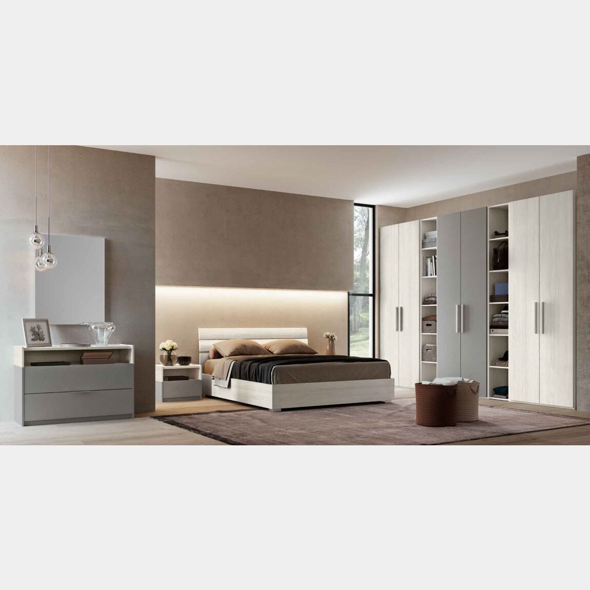 Camera matrimoniale Eolo completa, finitura Bianco Altea e Grigio Argento
