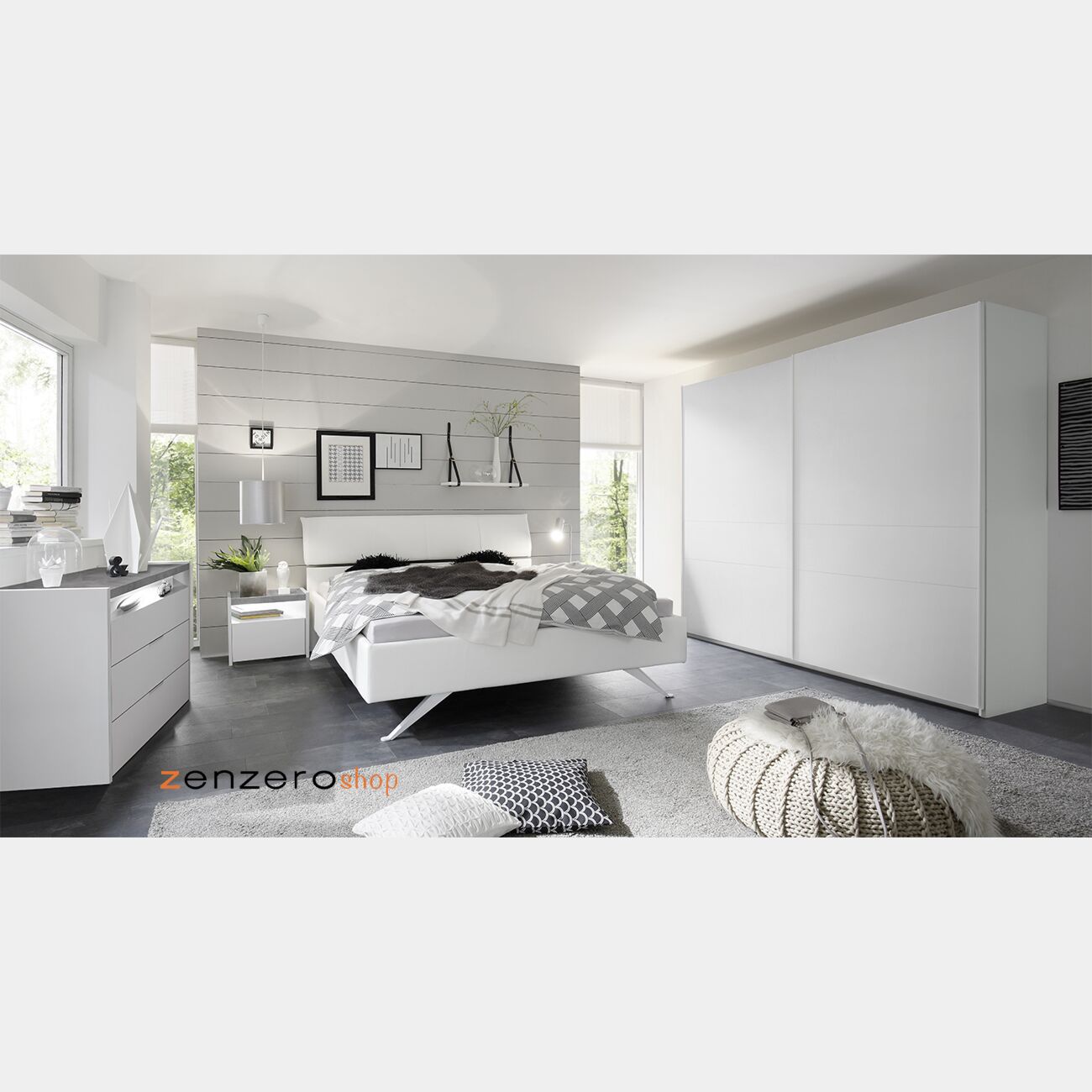 Camera matrimoniale moderna bianca, scontata