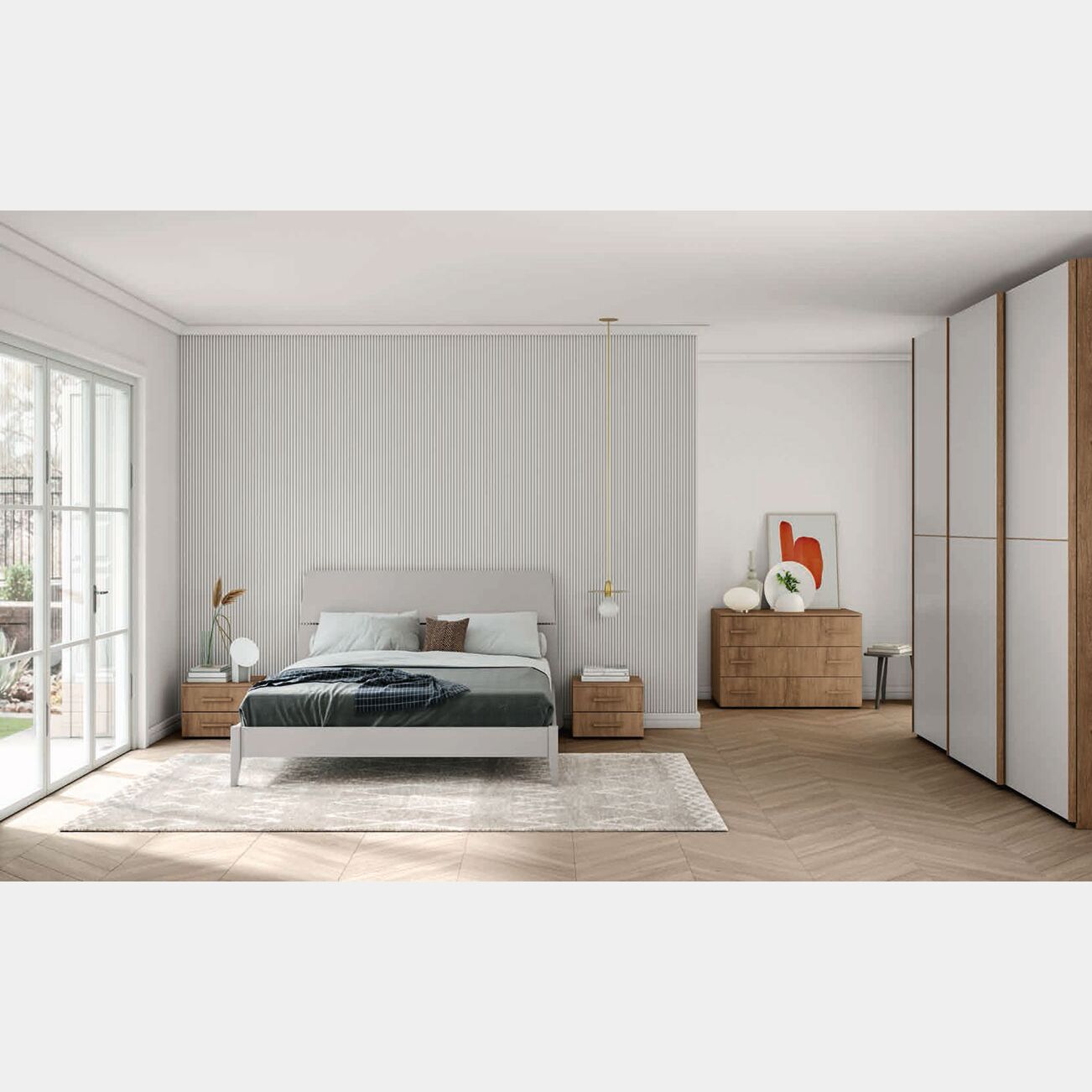Una camera che fa sognare, capace di stupire e accogliere chiunque desidera avere un ambiente elegante e degno di nota. La camera presenta due finiture: il Rovere cognac ed il Grigio dorian.