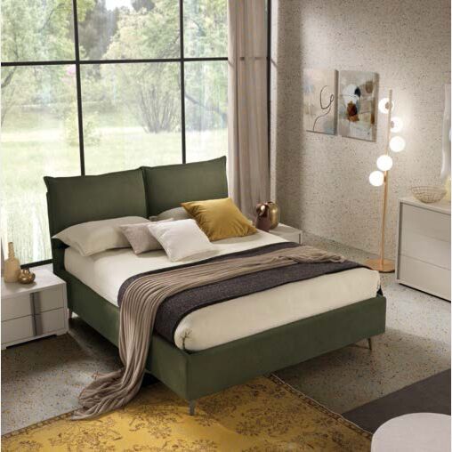 Come optional è possibile richiedere il letto imbottito con cuscini in testata, anche nella versione con contenitore, e la specchiera.