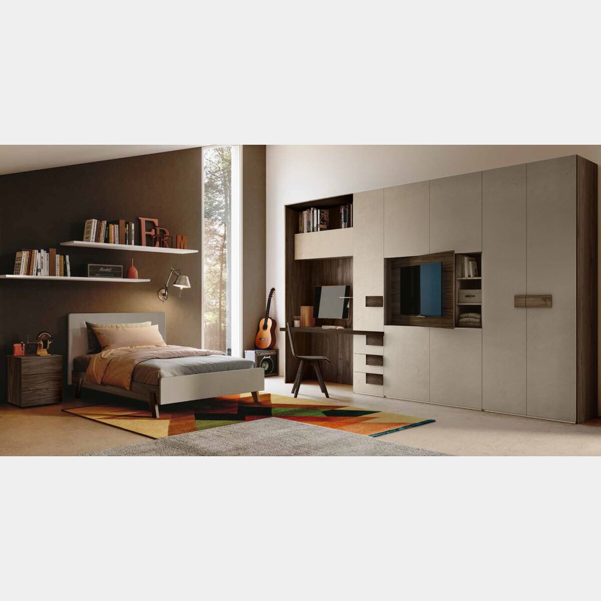 Camera ragazzi completa in Noce moro e spatolato Argilla