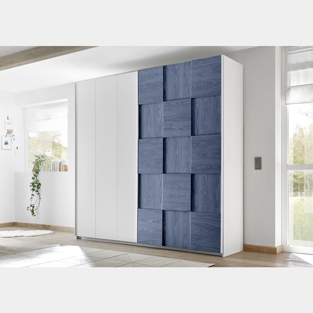 - Armadio Miss a 2 ante scorrevoli in colore bianco opaco e blu: L.179 H.205 P.57 cm