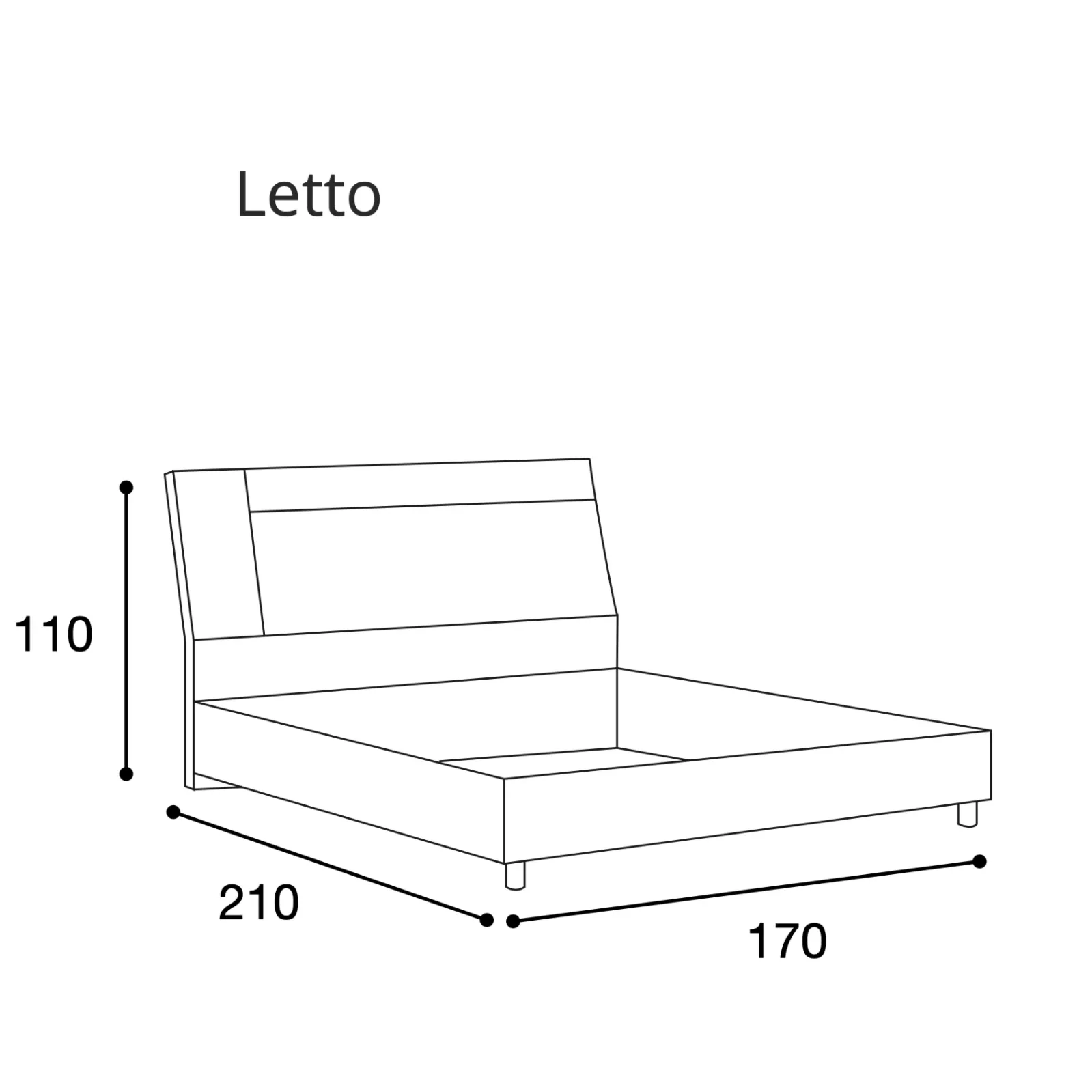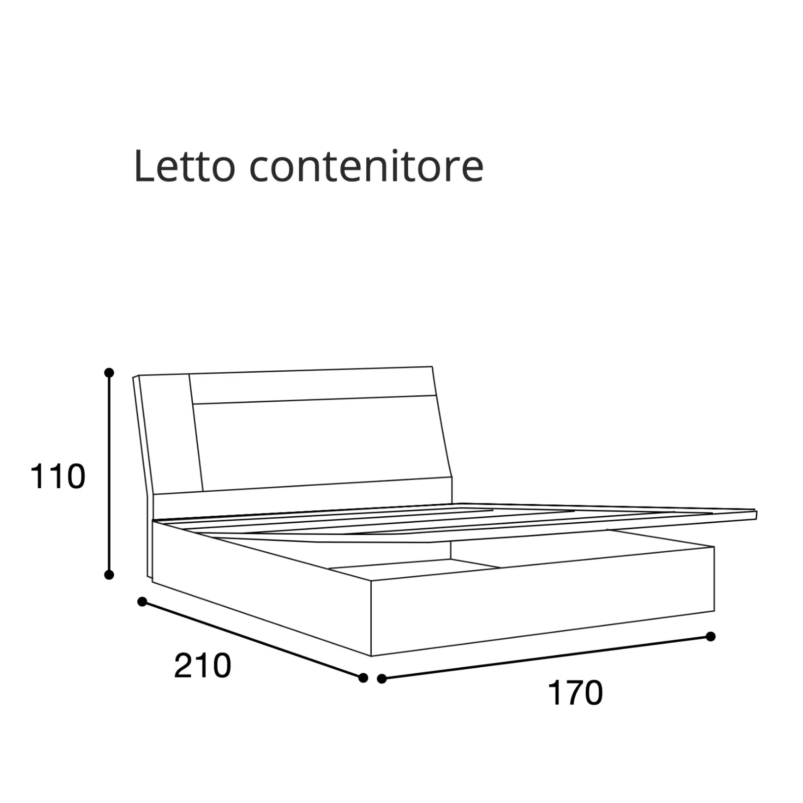 Il letto matrimoniale presenta una testata inclinata con decori, supporta la rete di dimensioni 160x190 (optional).