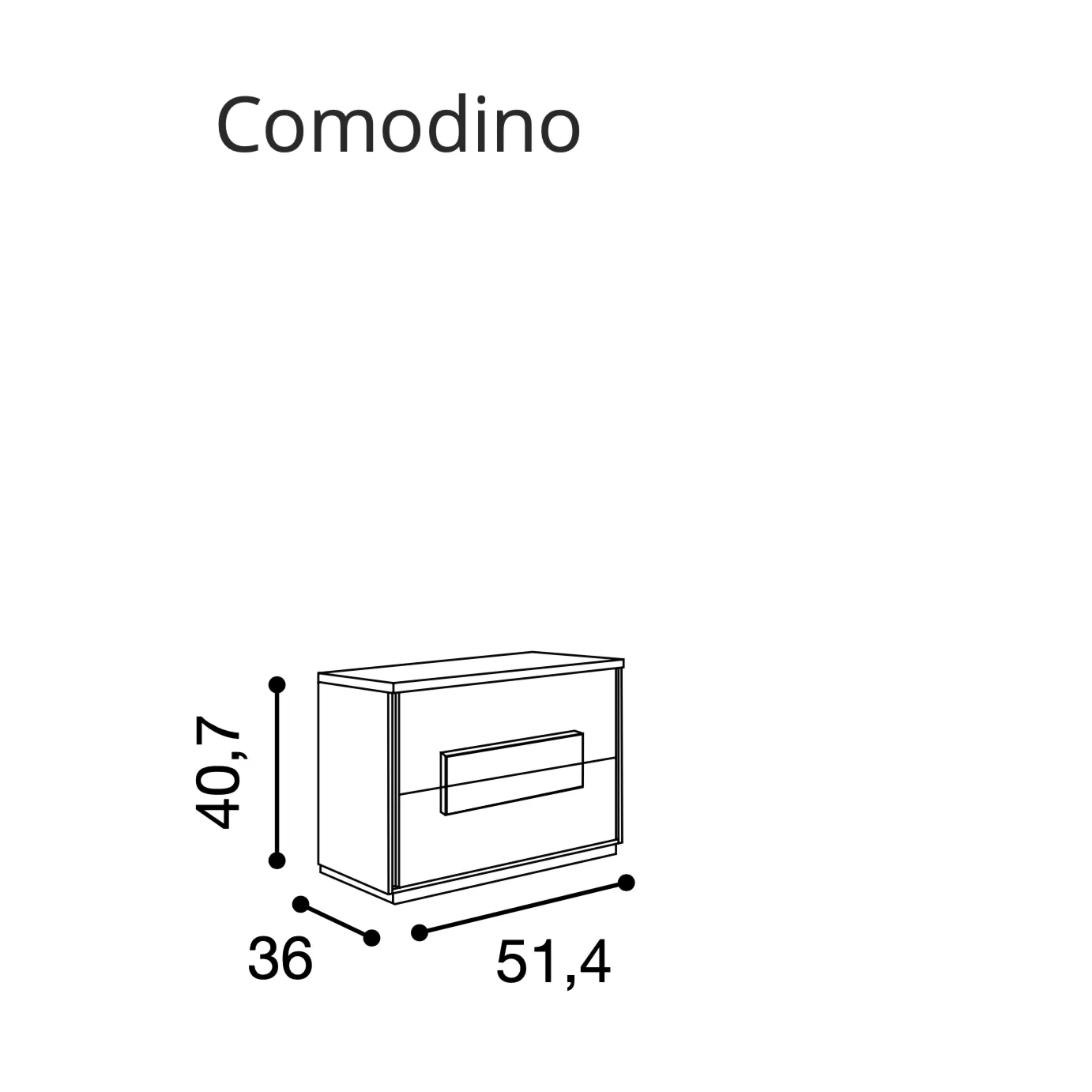 • Comodini: L.51,4 H.40,7 P.36 cm