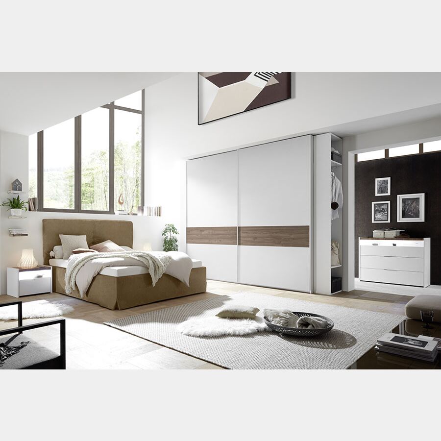 Camera matrimoniale Moderna e Conveniente. Completa e disponible nella finitura Bianco opaco con inserti Beton.