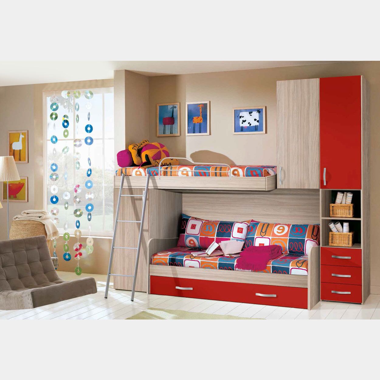 Cameretta a castello offerta, finitura Olmo e Rosso