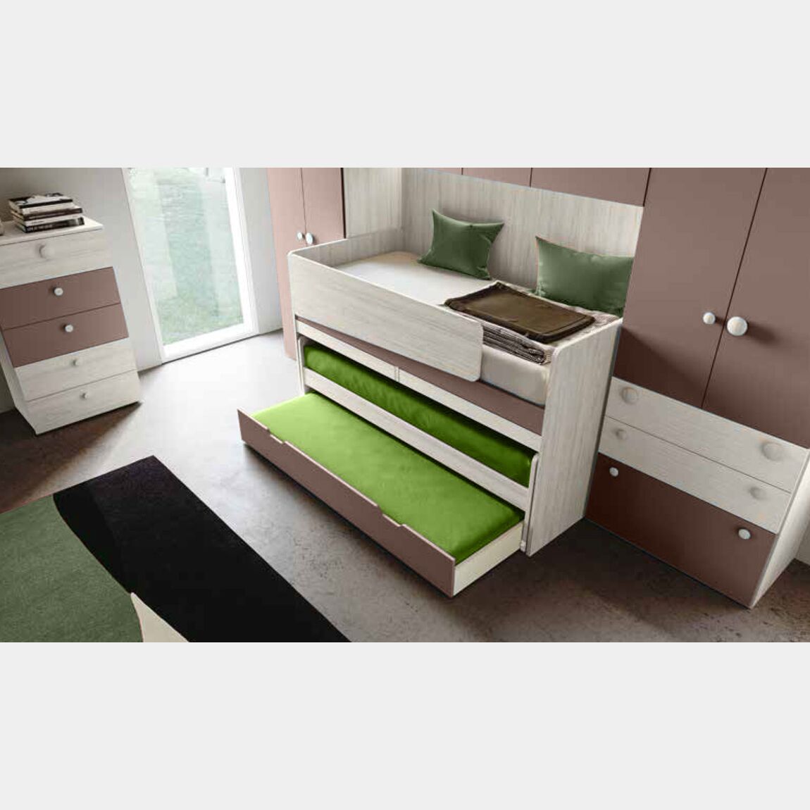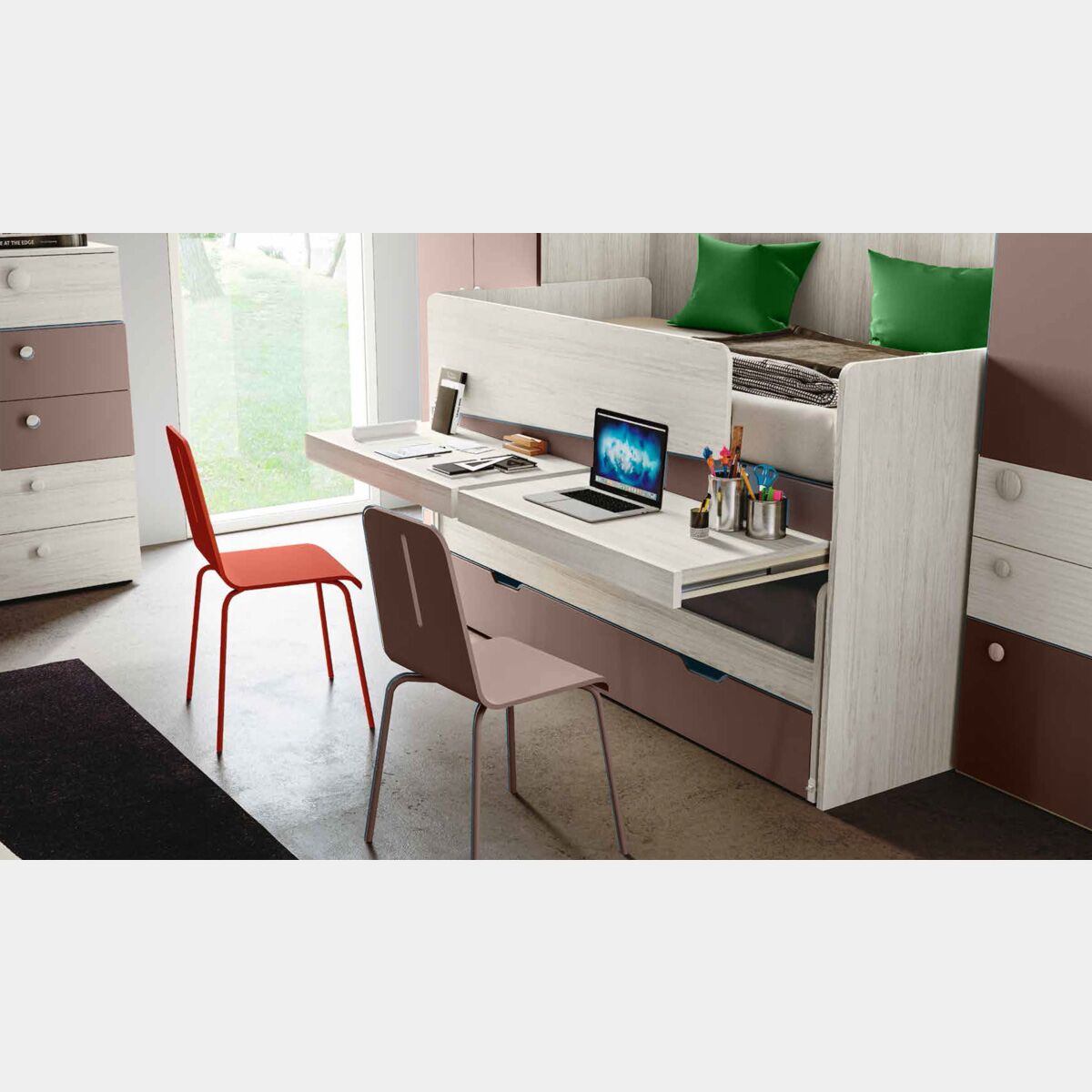 Nella parte sottostante è posto un letto multifunzionale che offre fino a 3 posti letto. Caratteristica principale della struttura è la presenza di 2 piani estraibili che offrono una totale comodità durante le ore di studio e liberta nei movimenti durante il gioco.