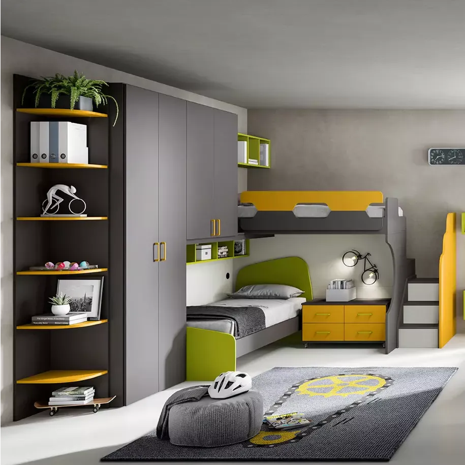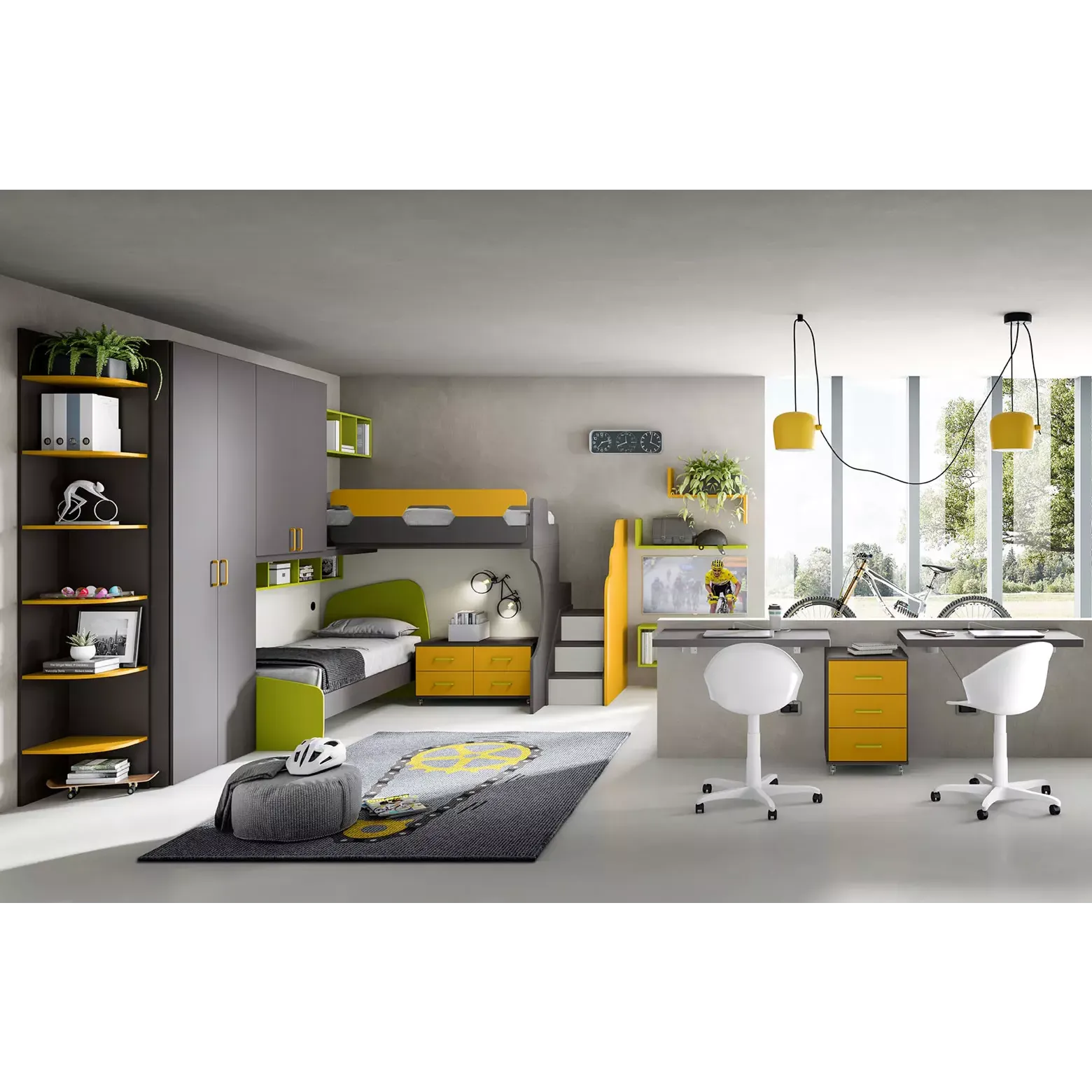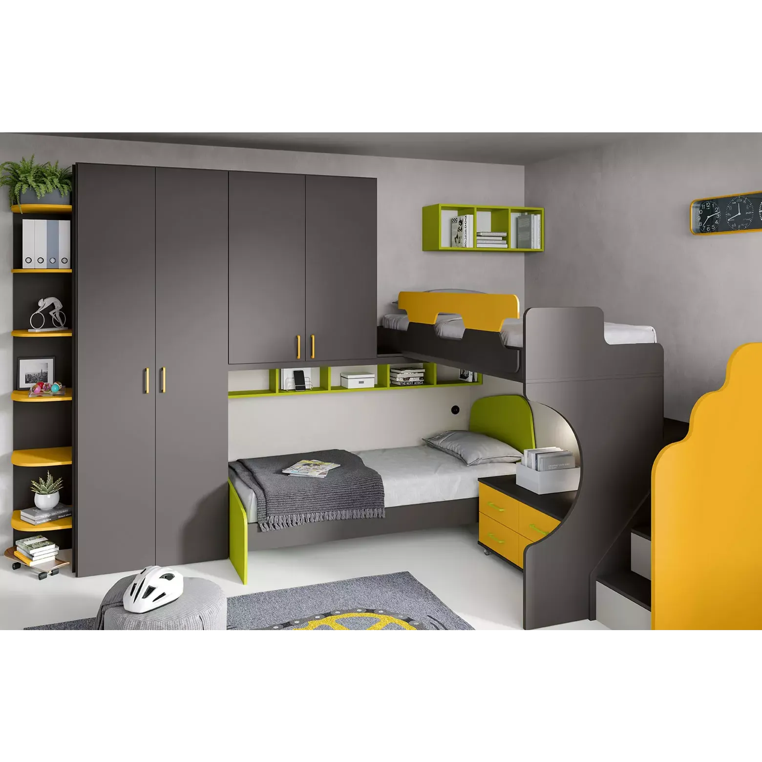 Cameretta a ponte angolare con passerella Grigio scuro, Verde acido e Giallo