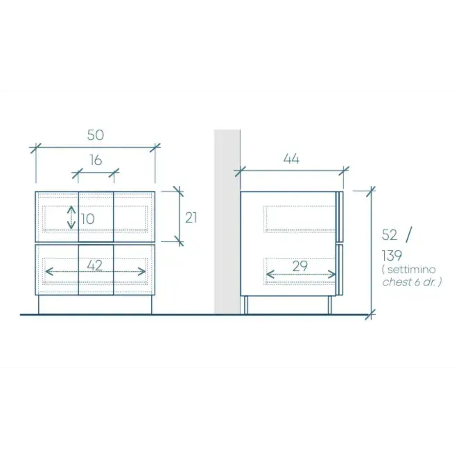 Il comodino presenta due capienti cassetti con imponente maniglia in tinta, le guide sono ammortizzate. Perfetto per contenere e arredare il comodino assicura la massima praticità, offrendo un valido piano d'appoggio per oggetti vari.