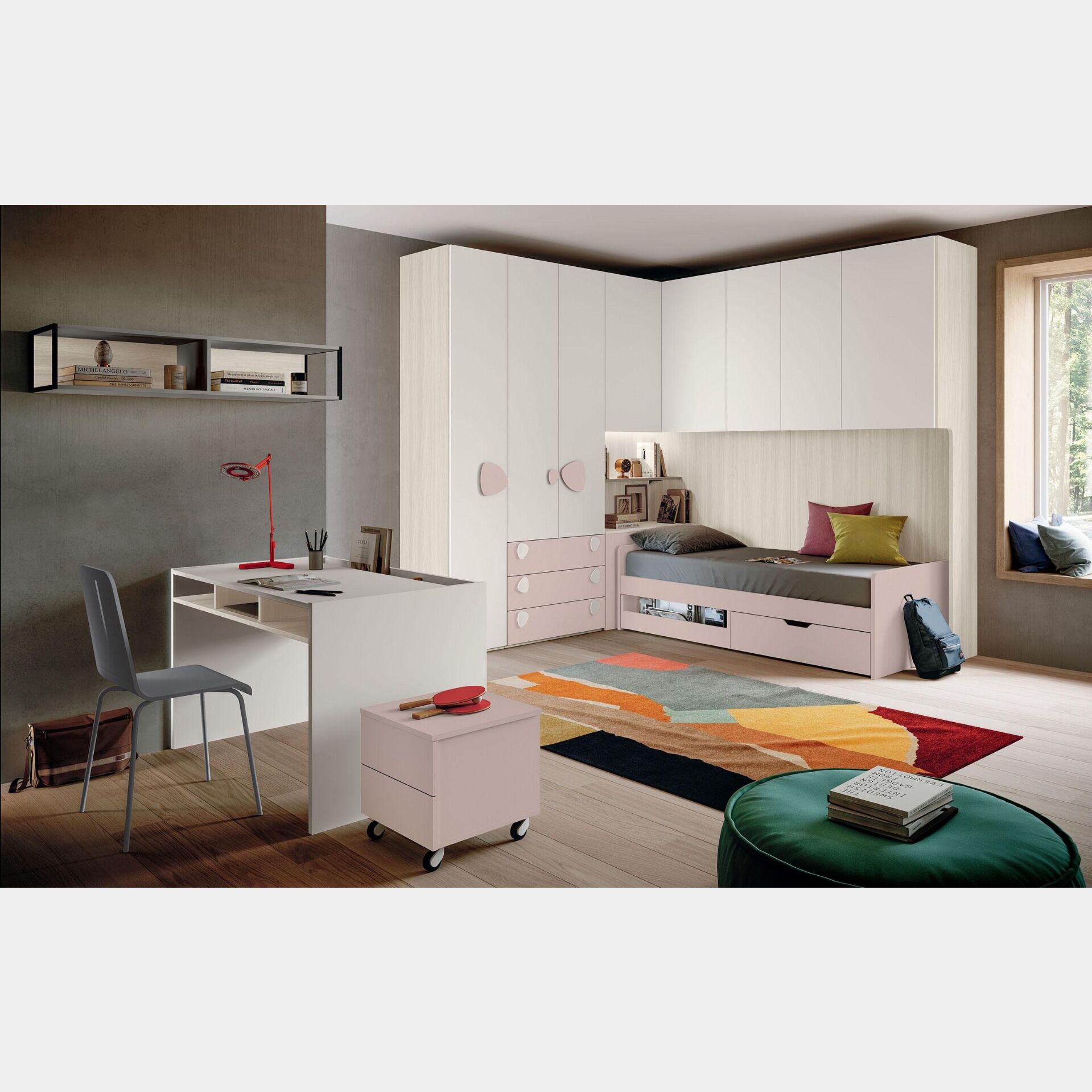 Puoi completare la cameretta aggiungengo una funzionale zona studio composta da scrivania, libreria e cassettiera oppure puoi aggiunegere solo parte di essa!