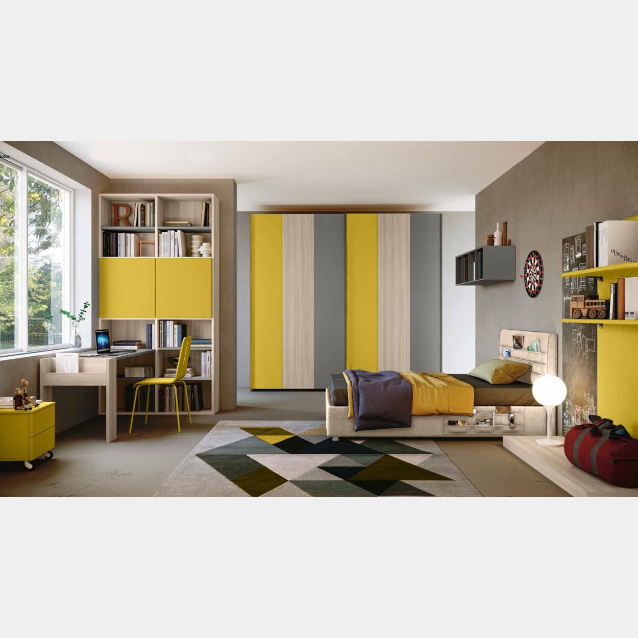 Cameretta bambini scontata, finitura Olmo, Giallo cedro e Grigio cenere