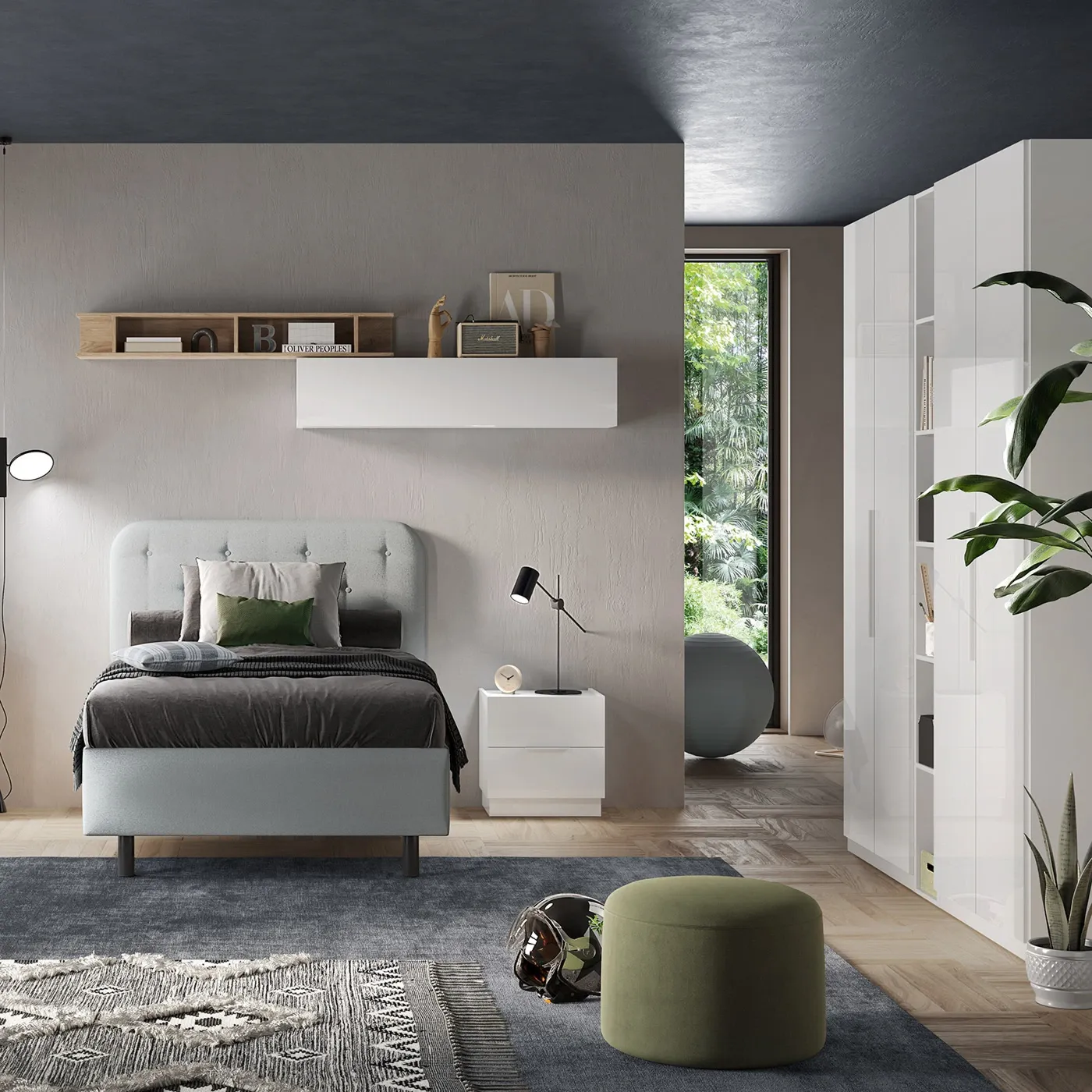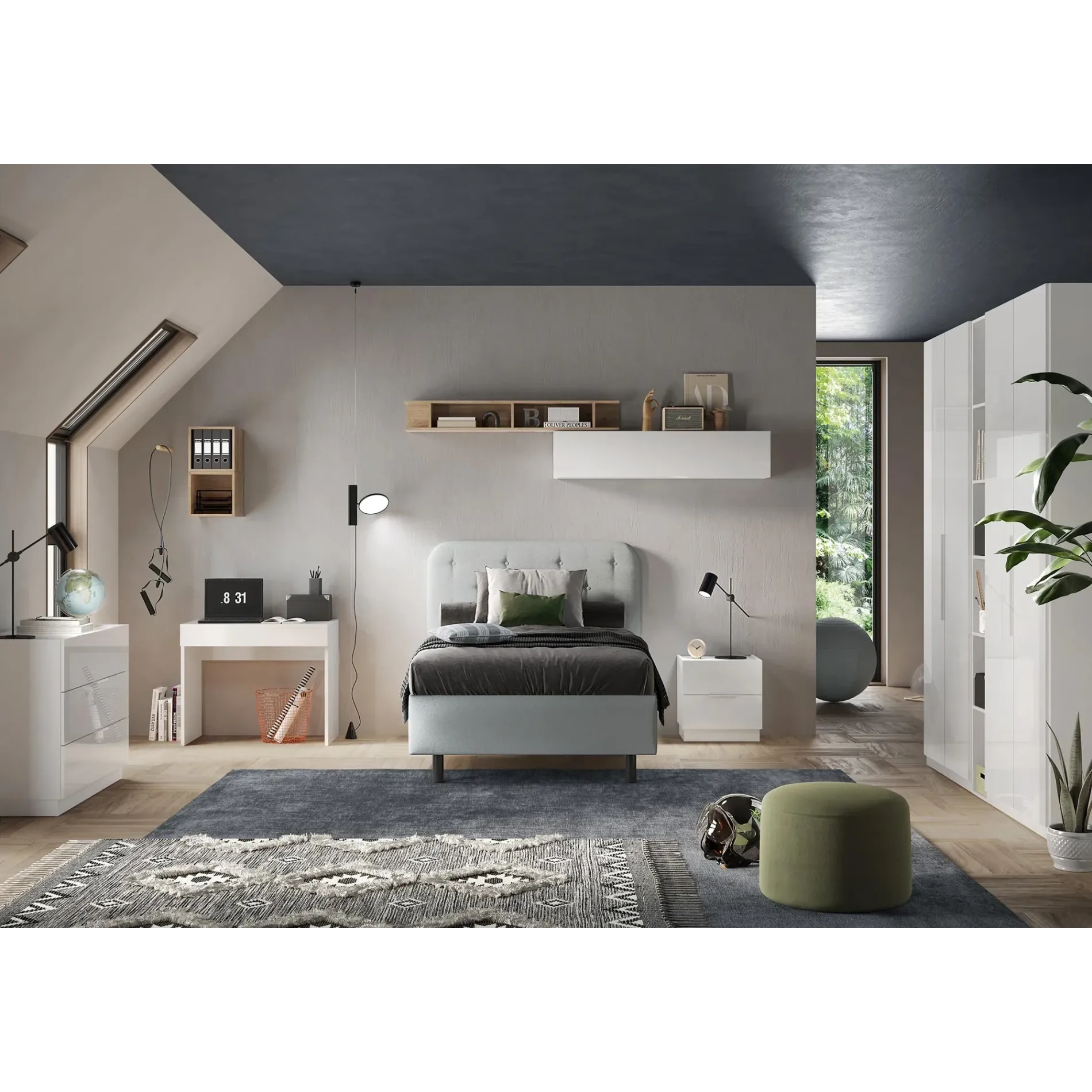 Cameretta Bianco lucido con letto una piazza e mezza, collezione Mondo