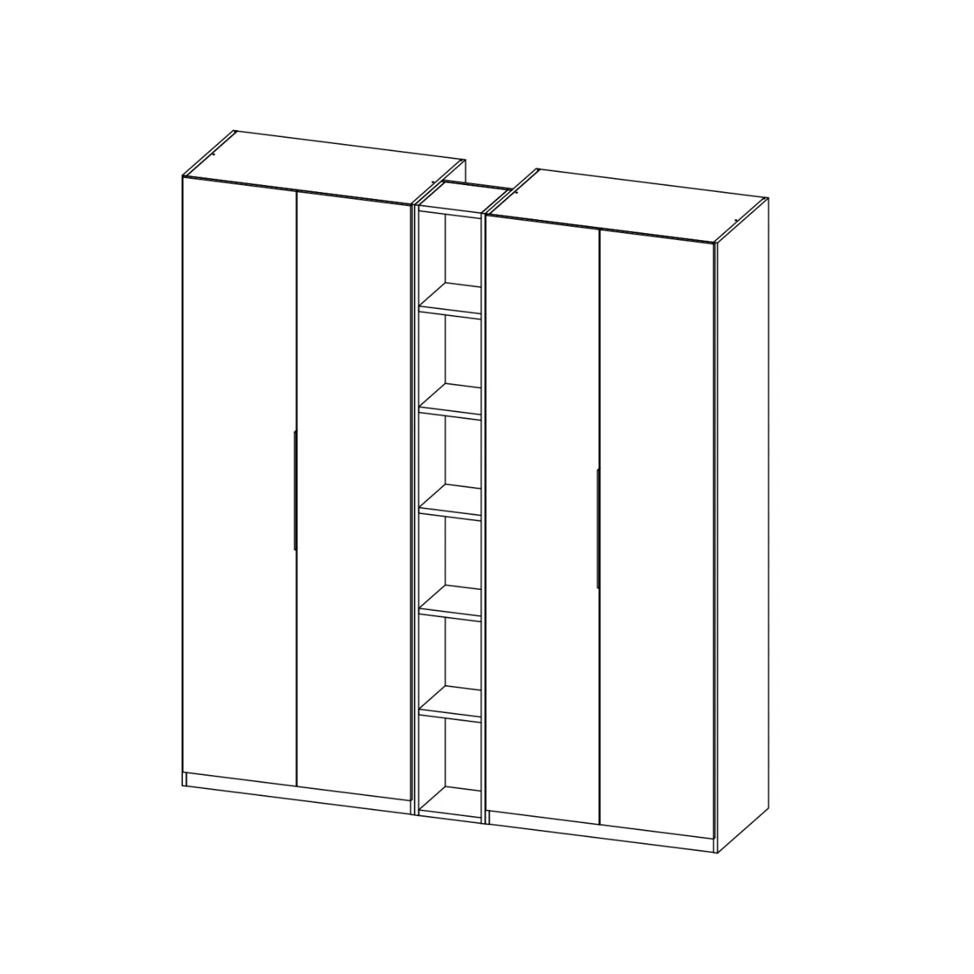 L'allestimento standard prevede un ripiano e due tubi appendiabiti per vano, è possibile richiedere tramite checkbox ulteriori ripiani, servetti, cassettiere e l'illuminazione.