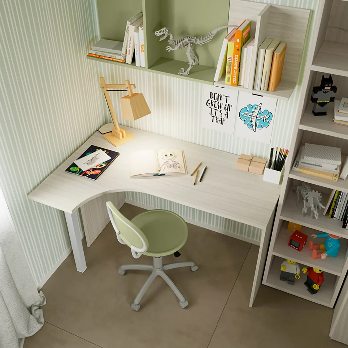 Cameretta con armadio angolare e zona studio, Noce brina e Oliva